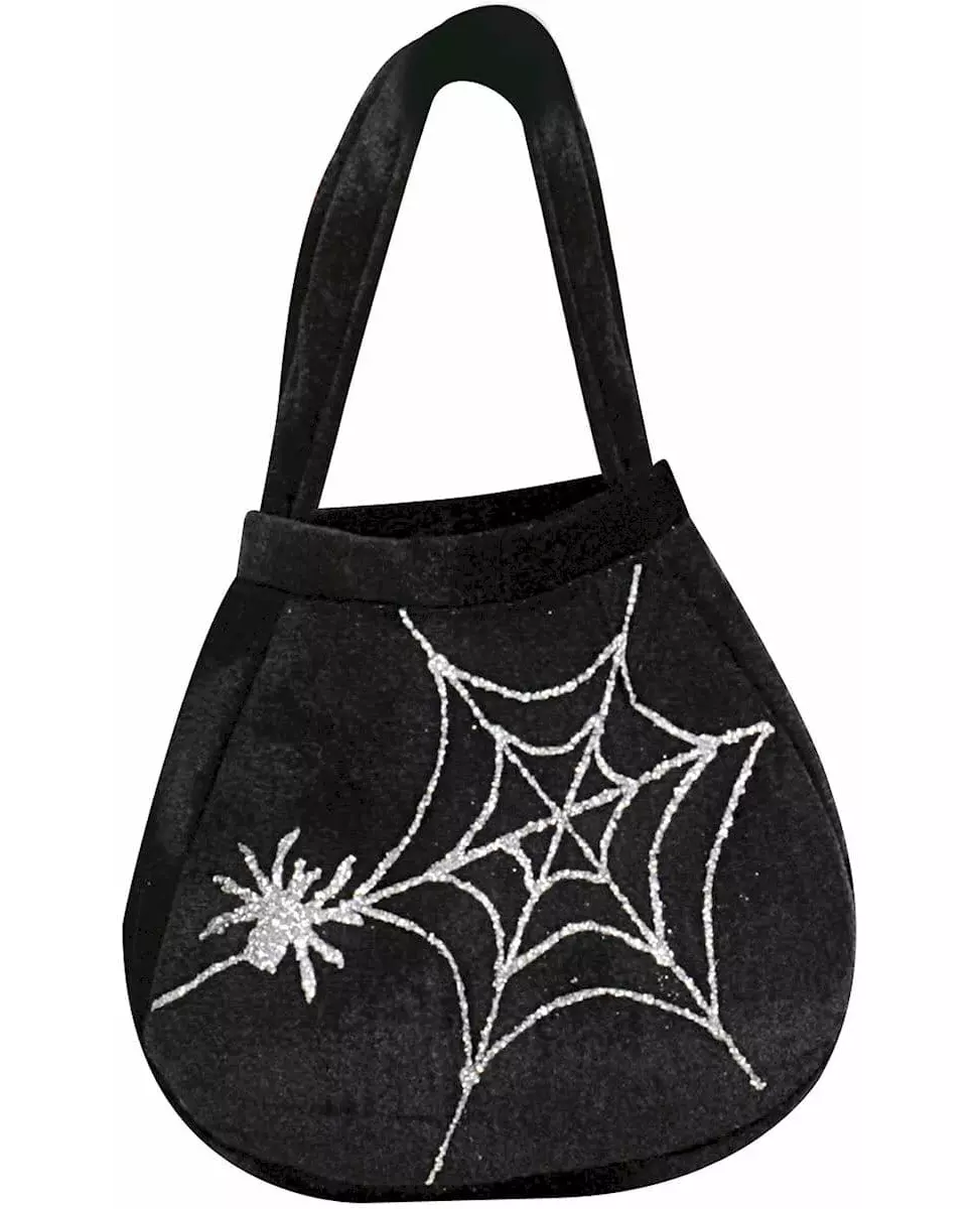 Complete your outfit with this pretty bag! This spider bag is for adults. It is made of black velvet with a silver design representing a spider and its web. This bag measures approximately 24 x 22 cm. It has a small handle that is 16 cm high. This very practical accessory is ideal for completing your costume for Halloween or for a costume party. © Copyright Widmann SRL. Accessories included: Bag