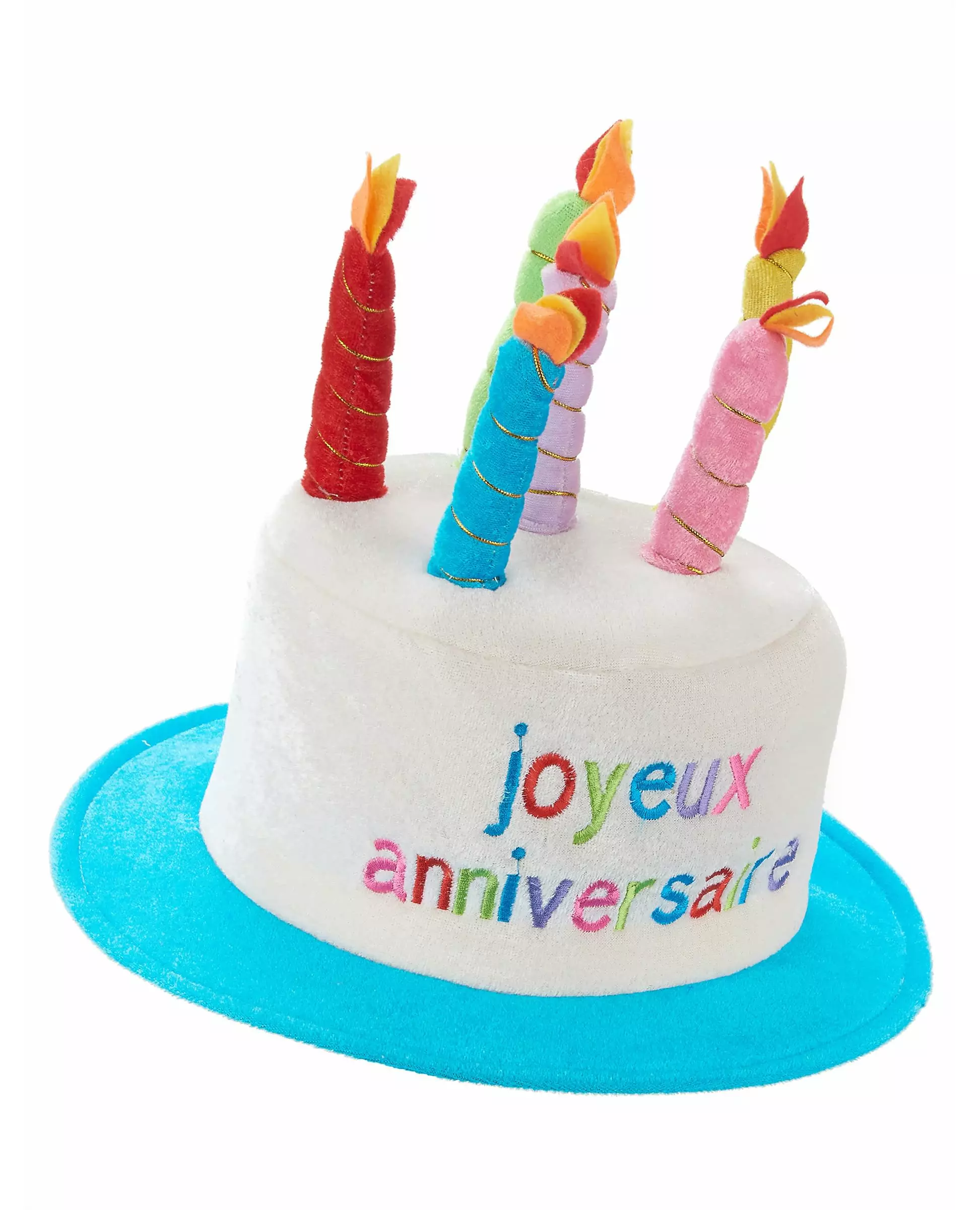 Happy Birthday! This beautiful foam hat covered in soft fabric is for adults. The edges of the hat are blue, the headpiece is white. The phrase "Happy Birthday" is embroidered in multicolored letters, and foam candles top the headpiece. It will fit most head sizes, as they are around 60 cm. To celebrate your birthday or that of others, this hat will definitely set the tone for the festive day!. Accessories included: Hat Material: Polyester