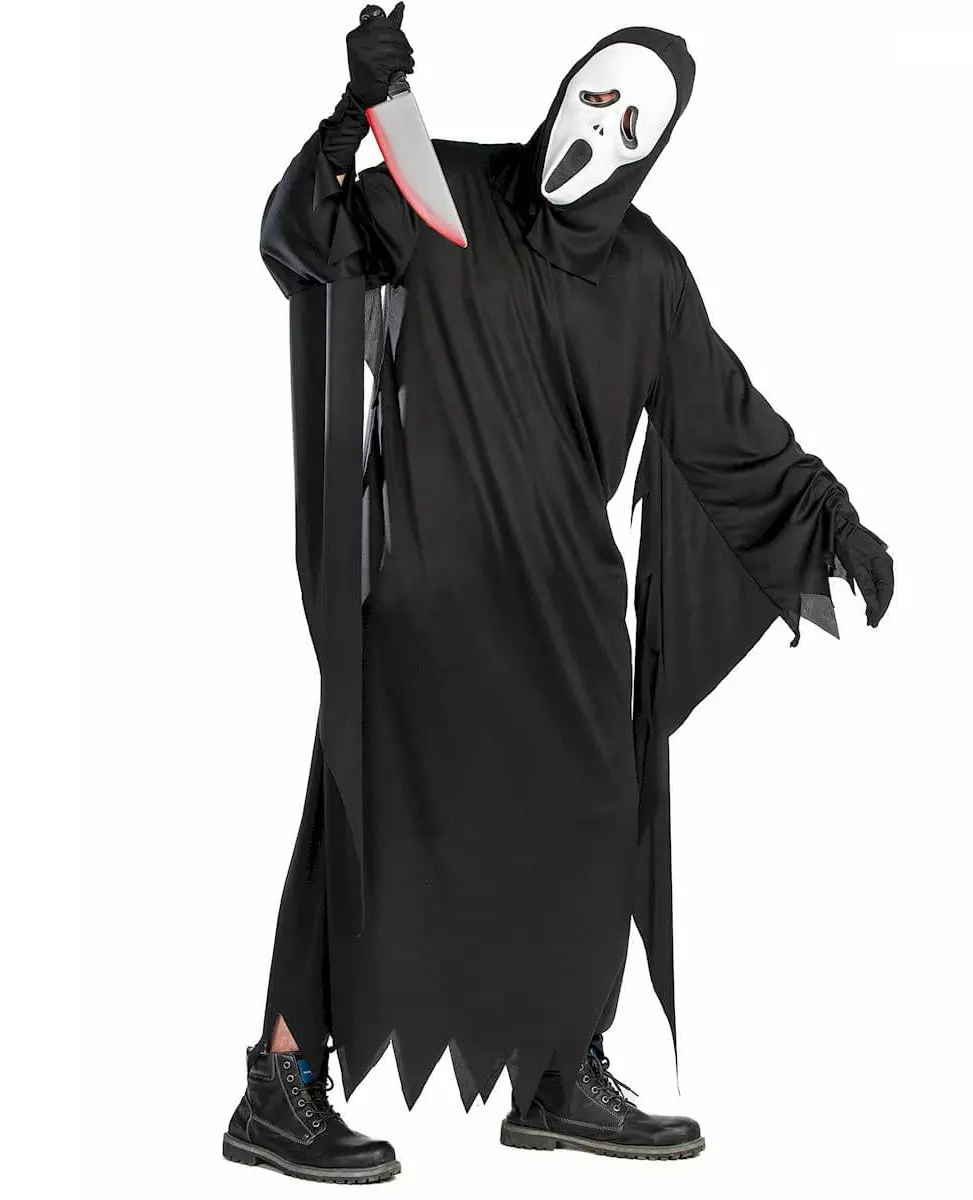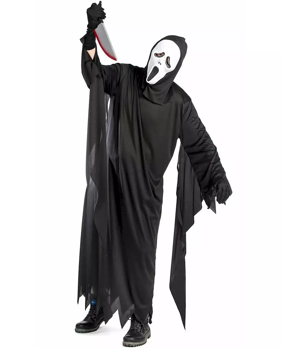 Embody terror this Halloween! This masked killer costume for adults consists of a black jumpsuit and a terrifying mask, perfect for instilling fear at Halloween or any fancy dress party. The flowing, lightweight black jumpsuit reaches down to your ankles to envelop you in a mysterious look. Its long sleeves and loose fabric not only ensure optimal comfort, but also add a touch of drama to your every move, enhancing your ghoulish appearance. The highlight of this costume is, of course, the creepy mask. With its expression frozen in a scream of horror, it completely conceals your face, transforming you into a ruthless, identity-less killer. This mask covers the entire face, leaving only your eyes visible for an even more chilling touch. Easy to put on and wear, this costume is the perfect choice for anyone looking to blend into the world of iconic killers from horror movies. Whether haunting the streets on Halloween night or scaring your friends at a themed party, this masked killer costume guarantees a striking effect. Accessories included: 1 Costume 1 mask Material: 100% polyester Care: Hand wash
