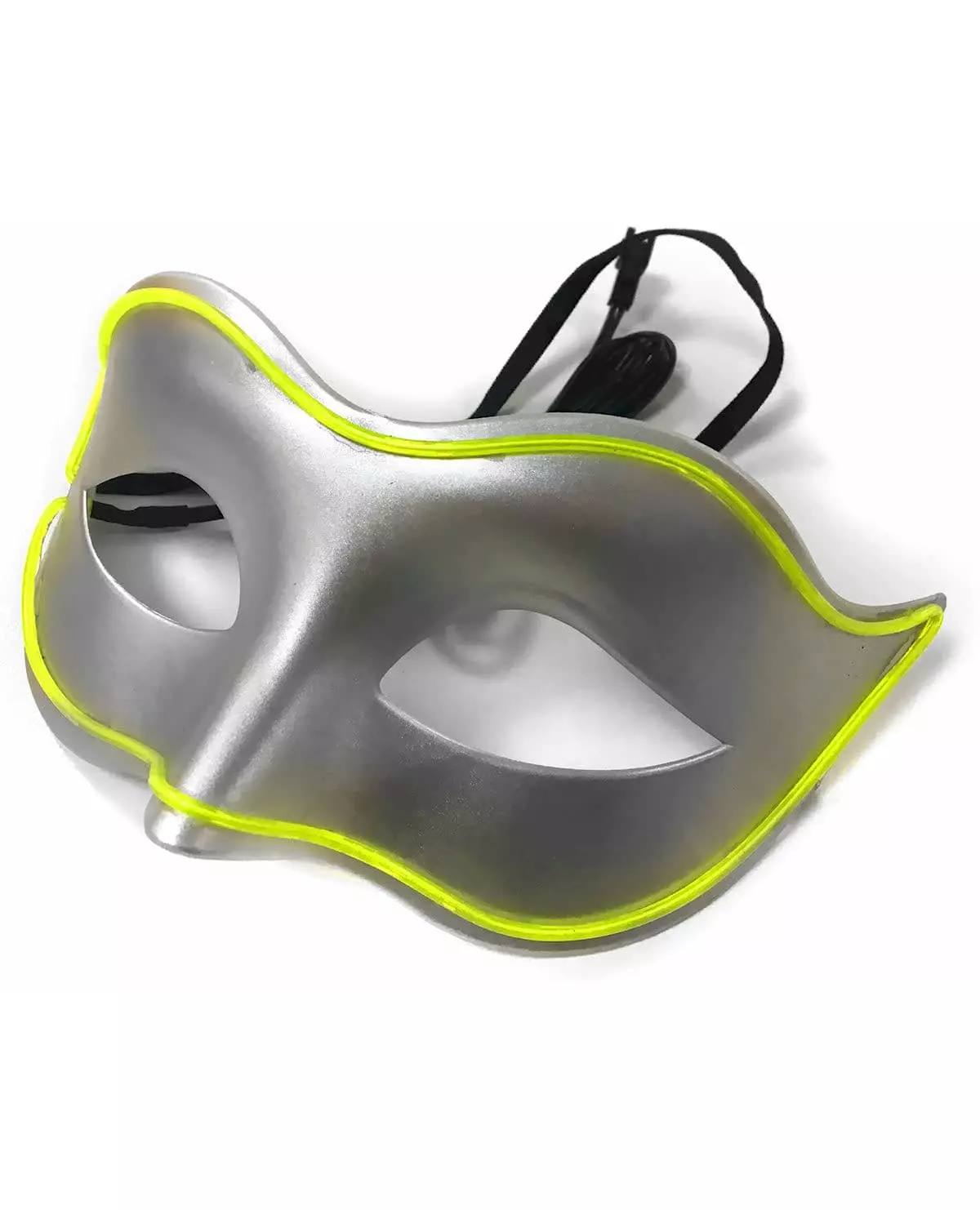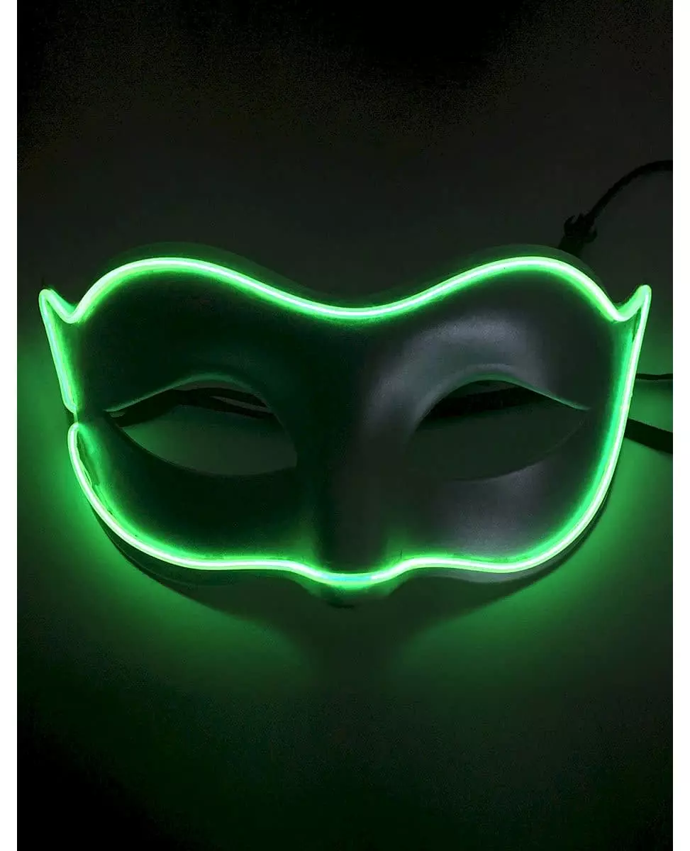 Light up your eyes with this LED mask This Venetian mask for adults is made of plastic. The outline is lined with an LED wire (random color). To operate this mask, the LED filament is connected to a box that runs on 2 AA batteries (not included). This mask will be perfect for getting noticed at a festival or an evening with friends. Accessories included: Mask