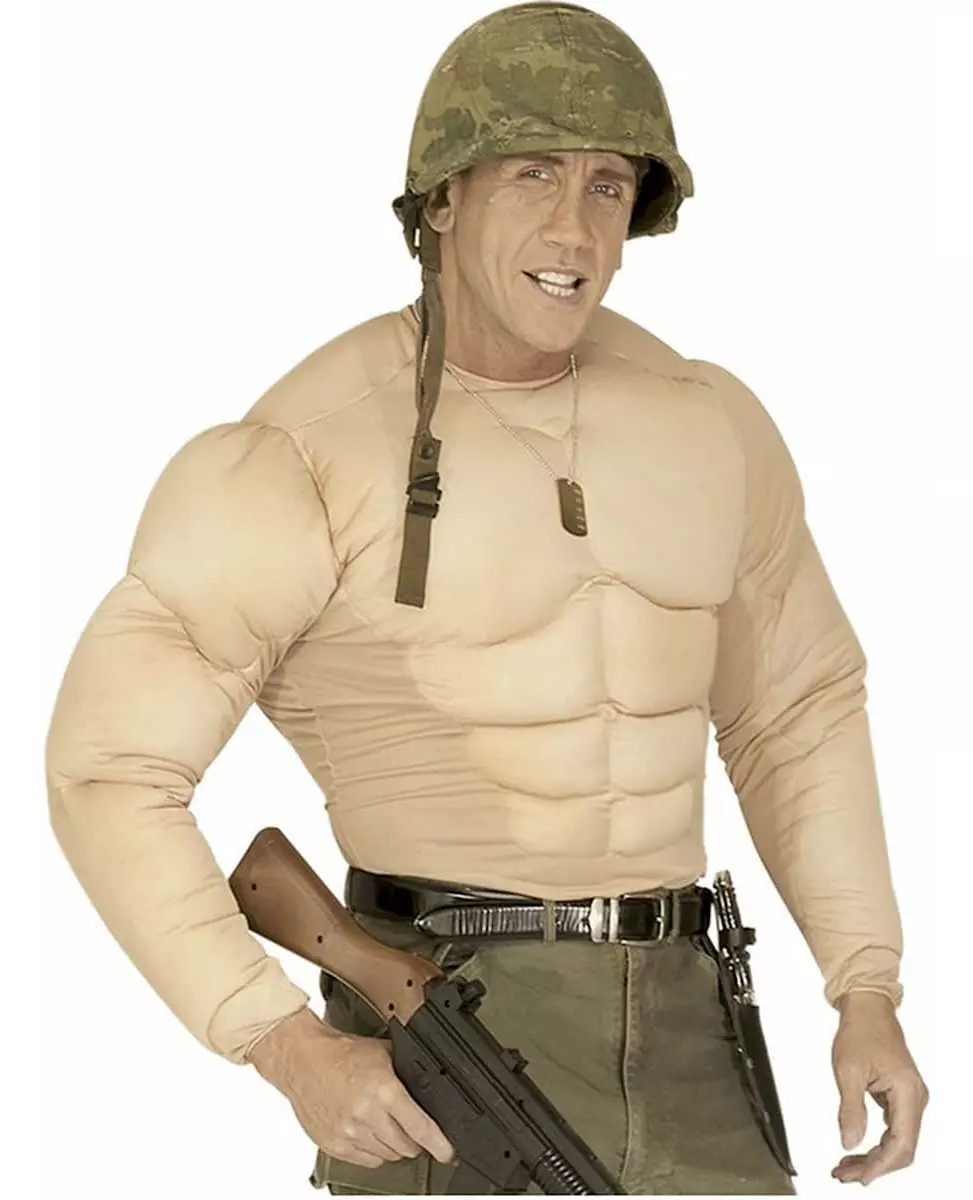 You're sure to find yourself in no need of rescue! This fake muscular torso for adults is actually a flesh-colored t-shirt that slips on easily over the head. Except for the back, this long-sleeved top is padded with foam around the main muscles and evokes intense bodybuilding training. Worn simply without anything on top or under another costume to create the illusion, this accessory will be the highlight of your fancy dress parties of all kinds!   Copyright Widmann SRL. Accessories included: Fake Torso Material: 100% Polyester Care: Hand wash