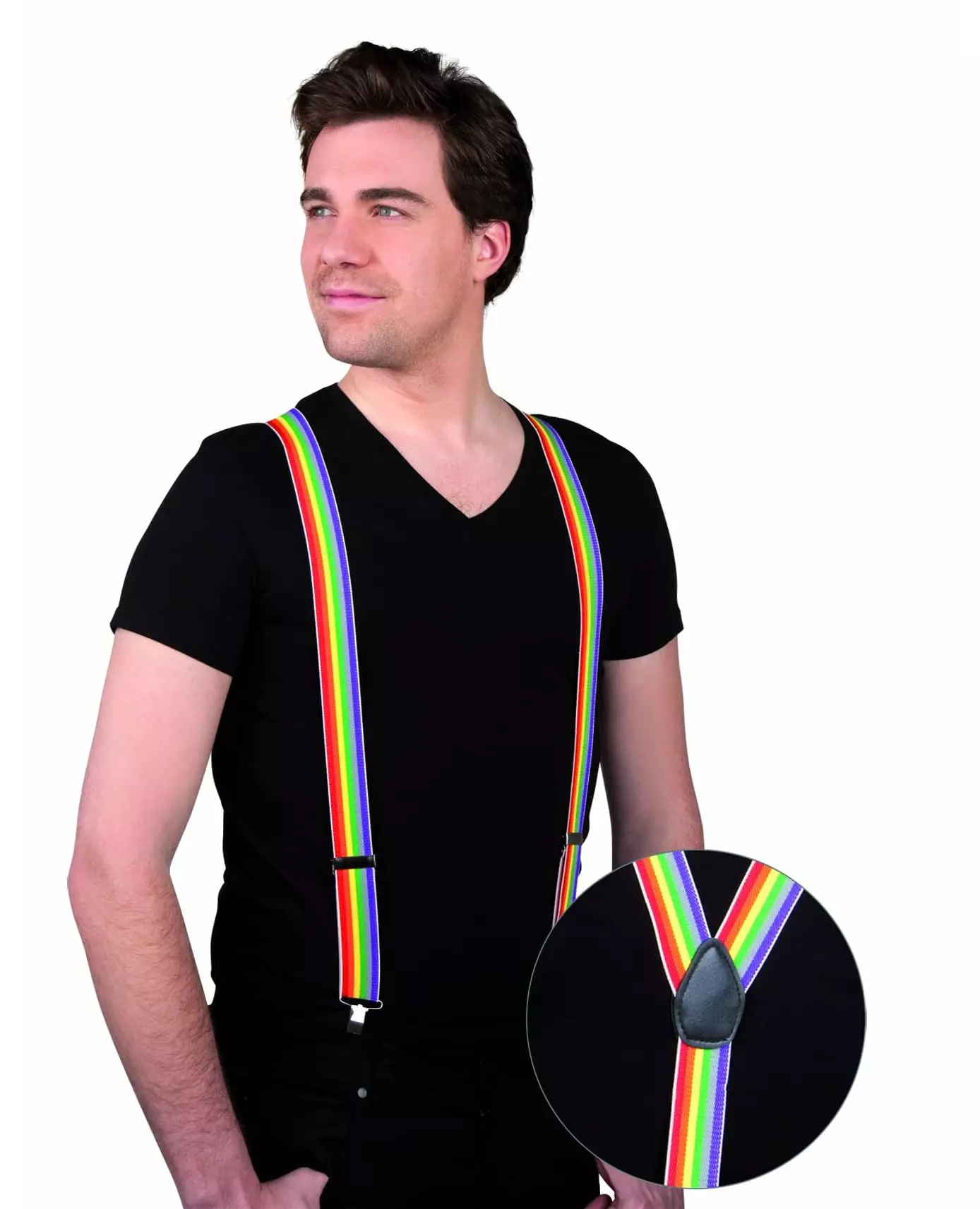 Multicolored! This pair of adult suspenders is multicolored and has metal fasteners. This accessory is the perfect addition to your costume for your costume or theme parties. Accessories included: Pair of suspenders
