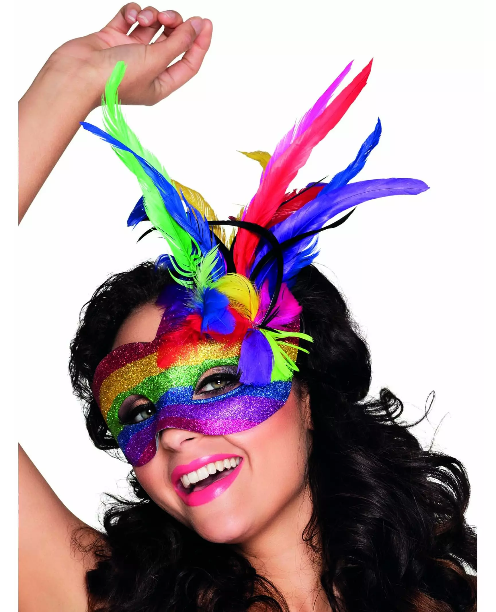 Adult multi-colored Venetian wolf with feathers