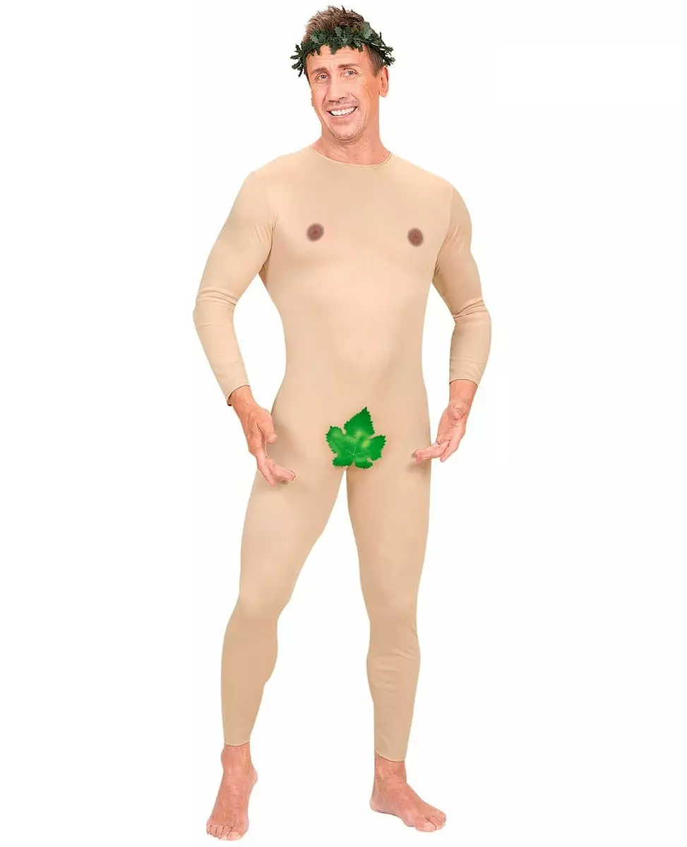 Just as God made you! This Adam costume for men consists of a full-body beige jumpsuit and a laurel wreath. The jumpsuit has a close-fitting cut to best reproduce the illusion of nudity. It is decorated with a vine leaf that serves to hide the masculine attributes. The costume is completed with a crown made of fake green laurel leaves. This costume will be perfect for a Seven Deadly Sins-themed party or for a bachelor party! Accessories included: Laurel Wreath Jumpsuit Material: 100% Polyester Care: Hand wash