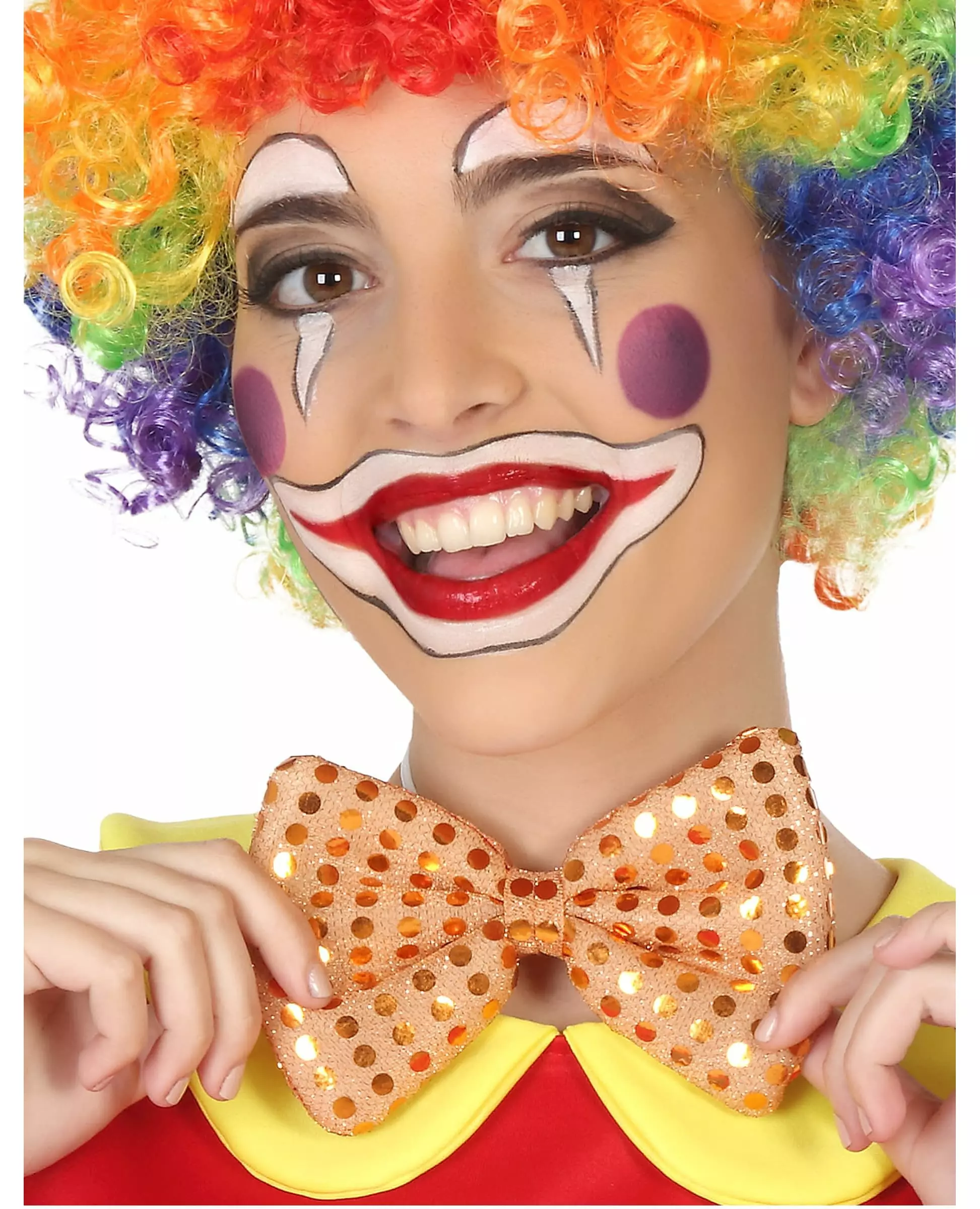 Shiny and clownish! This adult bow tie is orange. It is decorated with large sequins and is easy to put on with an elastic band. This sequined bow tie will be perfect to complete your clown costume for Carnival or to complete a disco outfit for a fancy dress party. Accessories included: Bow tie Material: 100% Polyester 100% Polyester