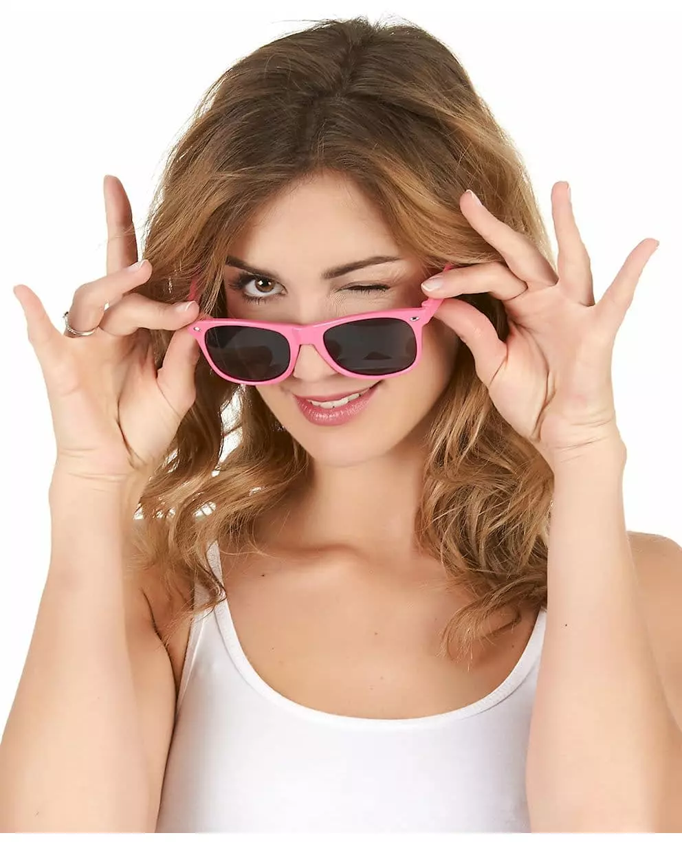 Dare to wear the neon pink look for colorful evenings! This pair of blue glasses is for adults. The plastic frame is neon pink. The lenses are category 3 filter and comply with EEC standards. This accessory will be perfect for adopting a neon pink look during your costume parties or for Carnival. Accessories included: Glasses Material: Plastic