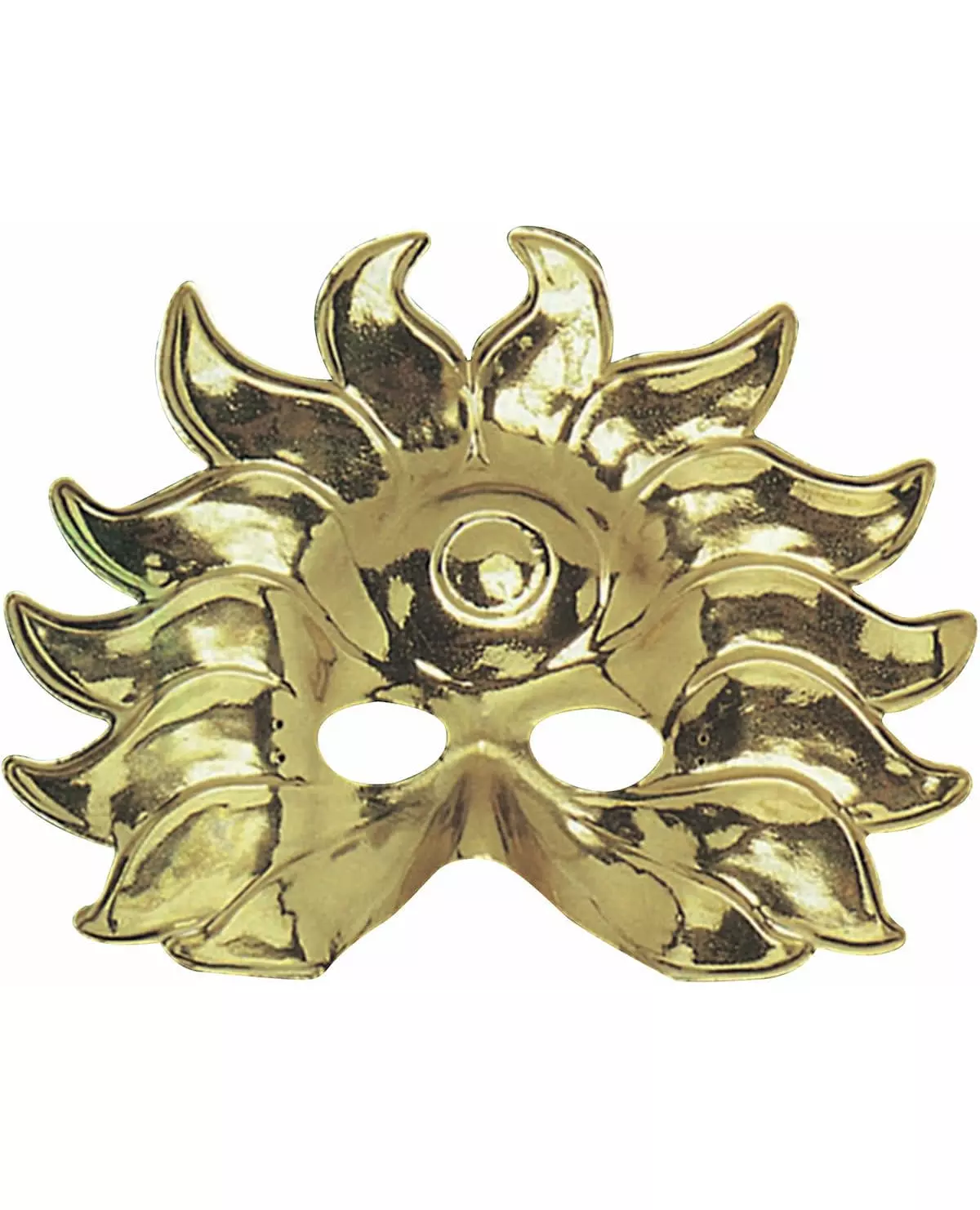 Shine bright with this sun mask This adult mask is made of gold plastic. It will not hide the lower part of the face. It represents a sun with openings for the eyes. This mask will be perfect to complete your sun costume for Carnival. Accessories included: Mask Material: Plastic
