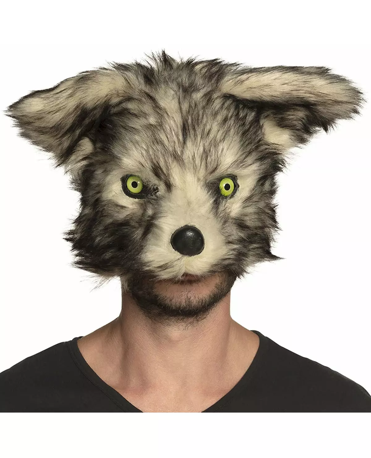 Howl like a werewolf on Halloween night This adult werewolf mask is made of synthetic hair. Plush effect, it has false yellow eyes. Nets are present in the corner of the eyes to allow you to see through. This mask is a half mask, it will only hide your face. It will be ideal to complete a werewolf costume on Halloween night. Accessories included: Mask,