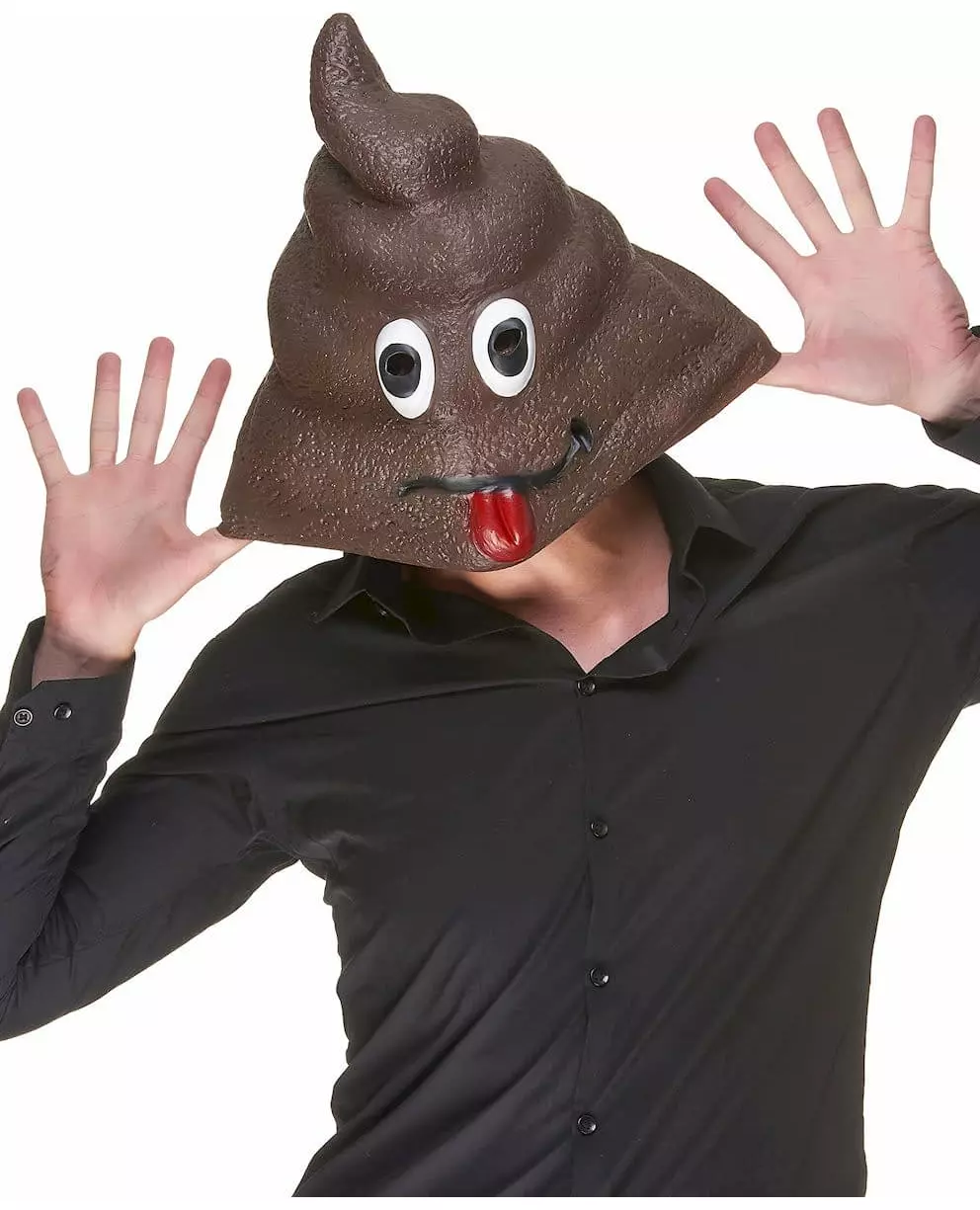 In a good mood This full-face latex mask for adults is in the image of a poop. Brown in color, a smile and two eyes (openwork) are present. The character sticks out his tongue. For a festival or for a costume party, this poop, placed on your head, will make your friends laugh for several hours. Accessories included: Mask Material: 100% Latex