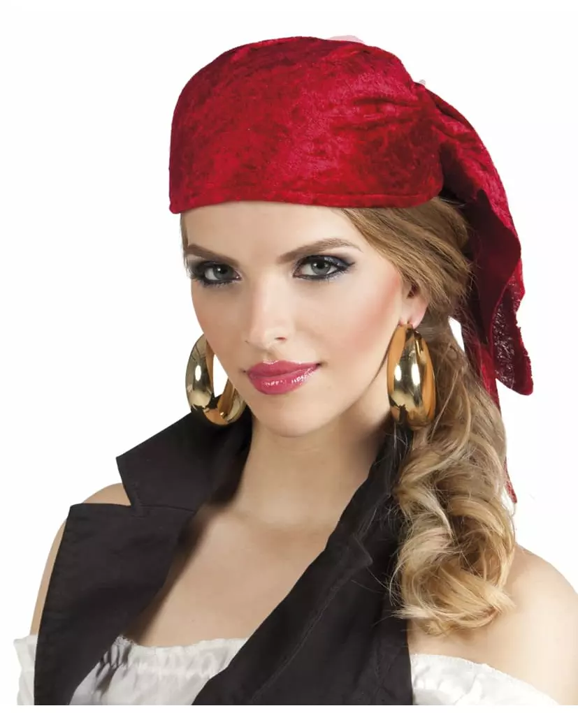 The pirates strike back! This adult bandana is attached to a hull. It is red in color with a velvet effect material. It measures approximately 20 cm in diameter. It is rigid for a good fit and a perfect shape. This item will give you a pirate effect to brave all storms on your good old boat. The adult red bandana is the perfect accessory for a successful pirate evening. Accessories included: Bandana Material: polyester