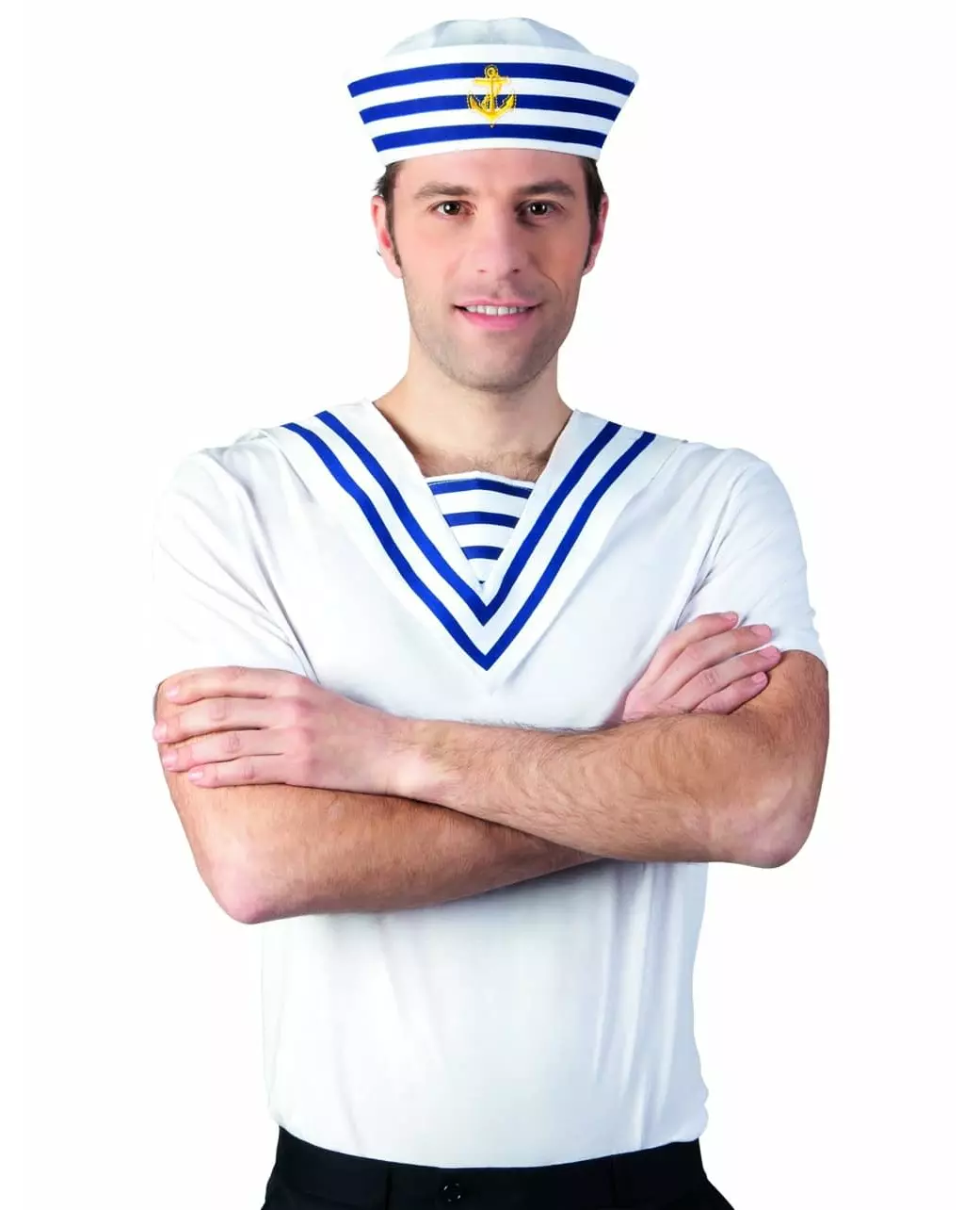 Become a real sailor This sailor collar for adults is white. It forms a point at the front that falls on the bust. It is also printed with thin dark blue stripes. Gold anchors are also sewn on the back of the collar. This accessory will be perfect to complete a sailor costume during a nautical-themed evening or for Carnival. Accessories included: Collar Material: 50% Cotton, 50% Polyester Care: Hand wash