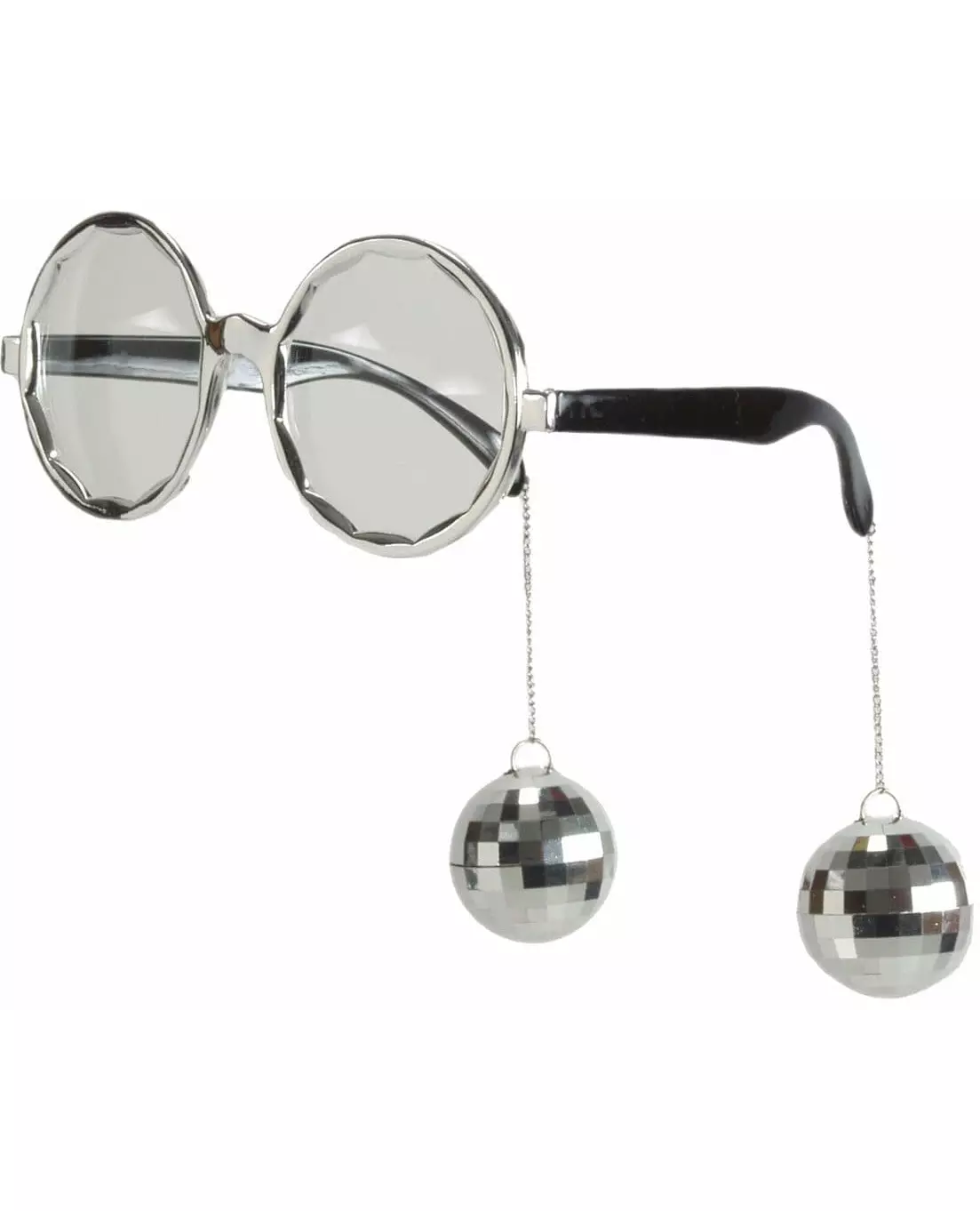 Bring back Saturday Night Fever! These adult disco glasses are made of silver plastic. They have black tinted plastic lenses. Small disco balls are attached to the arms of these glasses using a metal chain. This accessory will be perfect to complete a disco star costume for an 80s-themed party. Accessories included: Glasses Material: Plastic