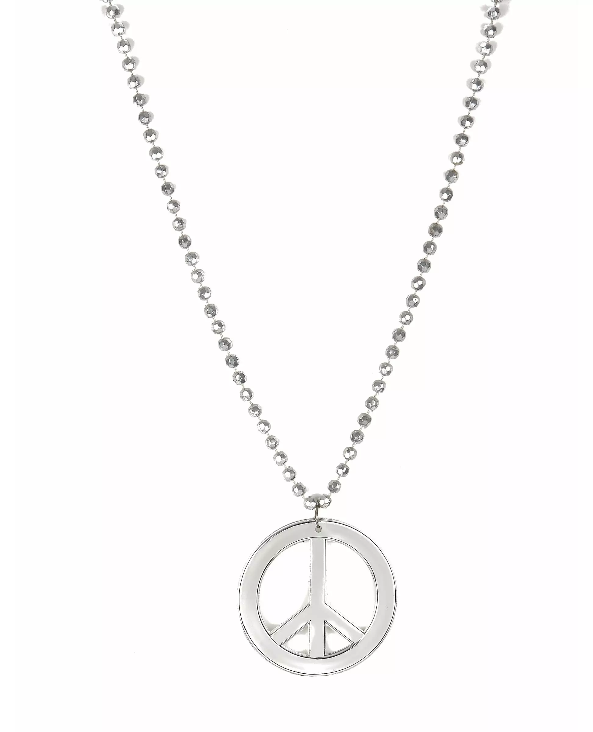 Silver Hippie Necklace for Adults Necklace with Beads This hippie necklace is for adults. It is made of plastic and consists of beads knotted together and a "Peace & Love" pendant which measures 7 cm in diameter.