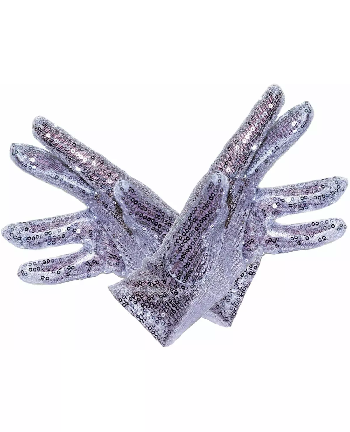 Glove your hands with sequins to party! This pair of short gloves for adults is white. Silver sequins are sewn onto these gloves to make them shine brightly. These gloves measure approximately 23 cm. This accessory will be the shiny touch to complete a disco or cabaret costume during your theme parties. Accessories included: 2 Gloves Material: 100% Polyester 100% Polyester