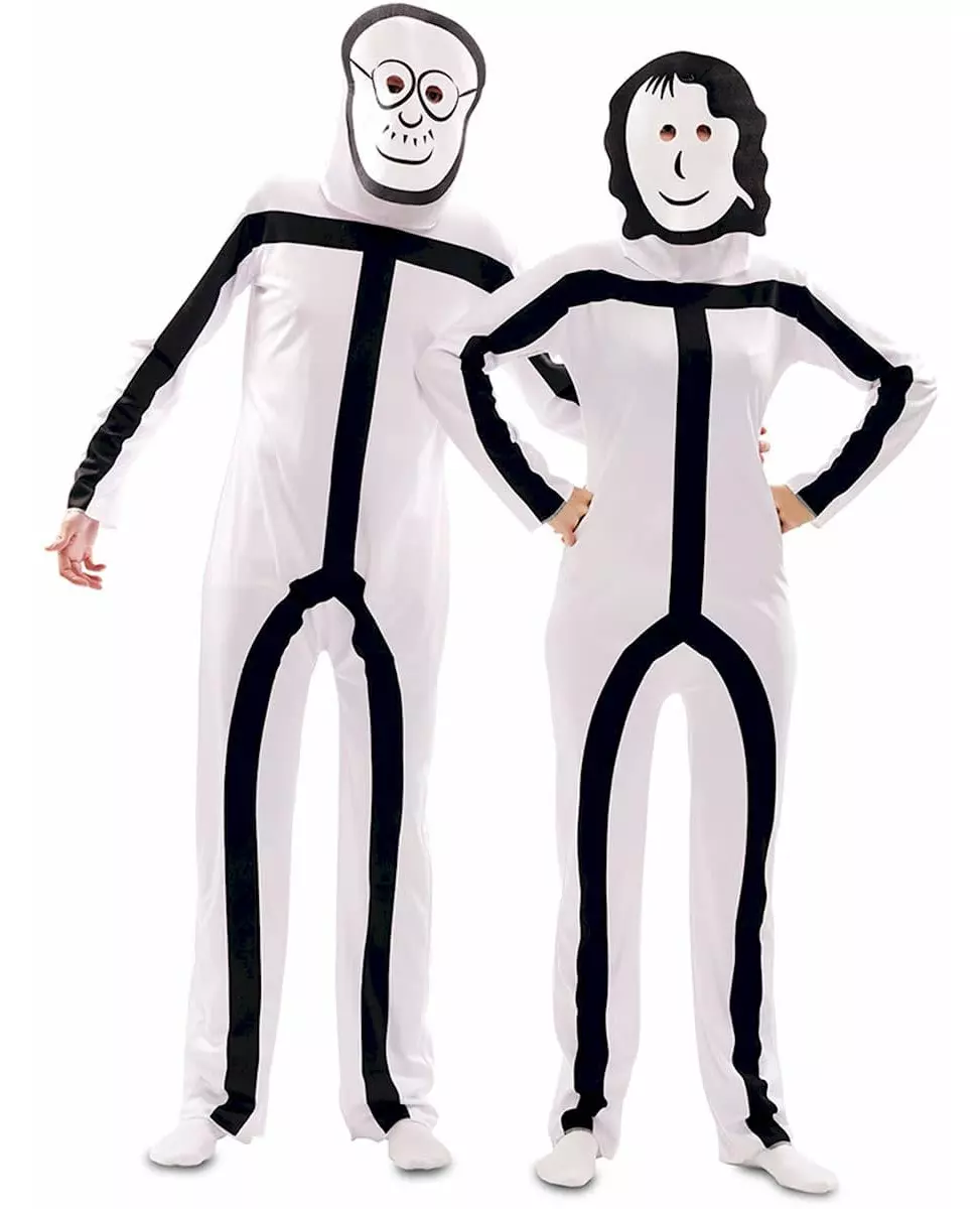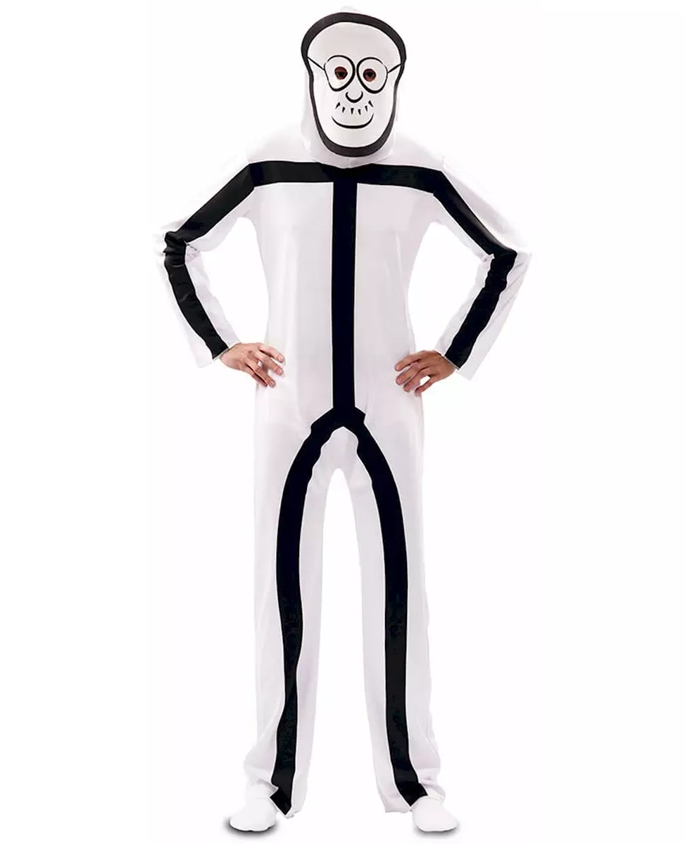 Stickman or Stickwoman? This adult Stickman costume includes a jumpsuit and 2 masks. The jumpsuit is flowing and white. A black print represents the body of a stickman. Two masks are included. One represents the face of a stickman and the other of a stickwoman. This video game character costume will be perfect for a comedy or character-themed costume party. Accessories included: Jumpsuit 2 masks Material: 100% polyester Care: Hand wash