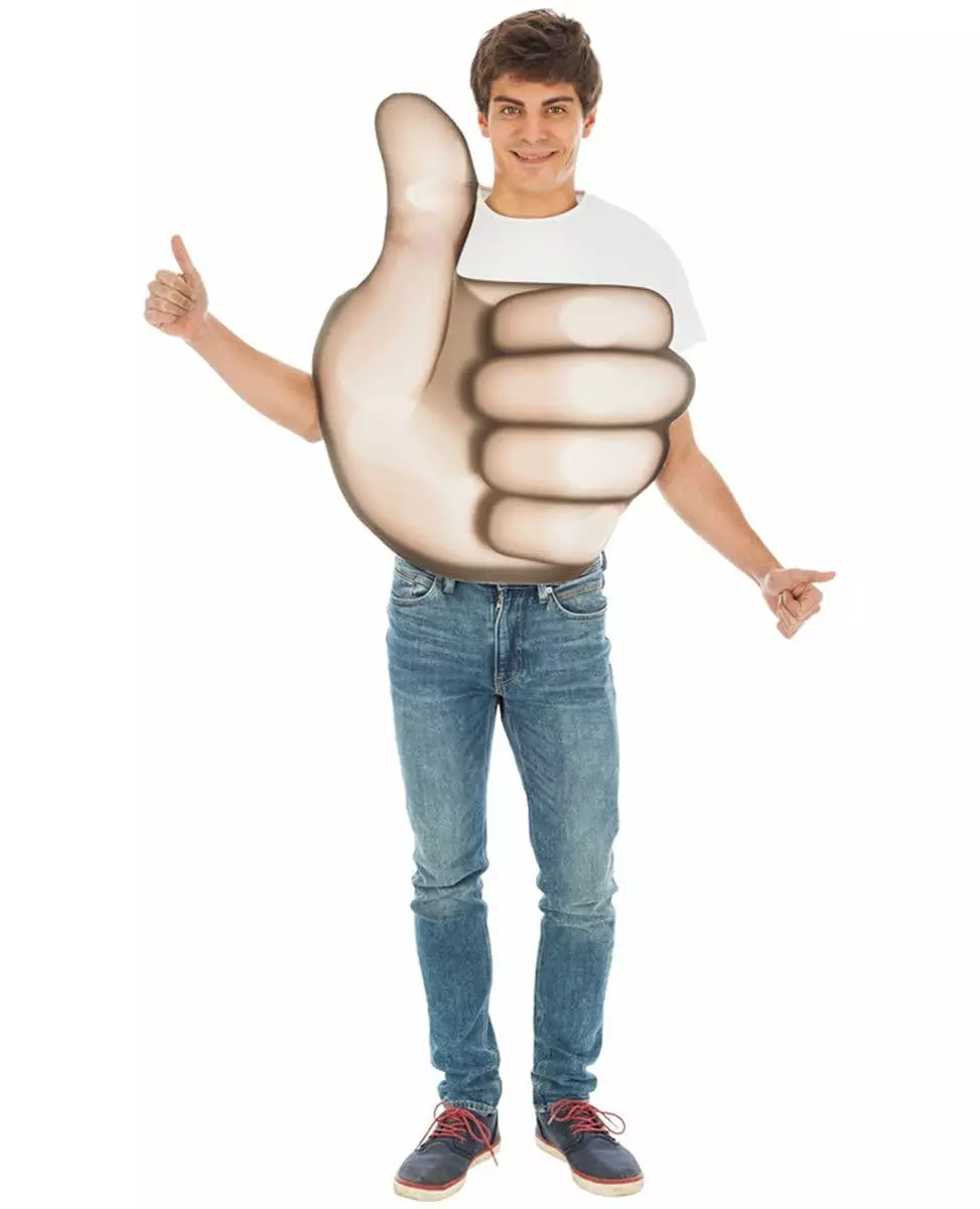 With the Thumb Emoji costume, everything is OK! This Thumb Emoji™ costume is officially licensed. It includes a chest protector only (t-shirt and pants not included). This chest protector represents the thumbs-up Emoji. It will be perfect for entertaining your friends at Carnival or any other fancy dress party. Accessories included: Chest protector Material: 100% Polyester Care: Hand wash
