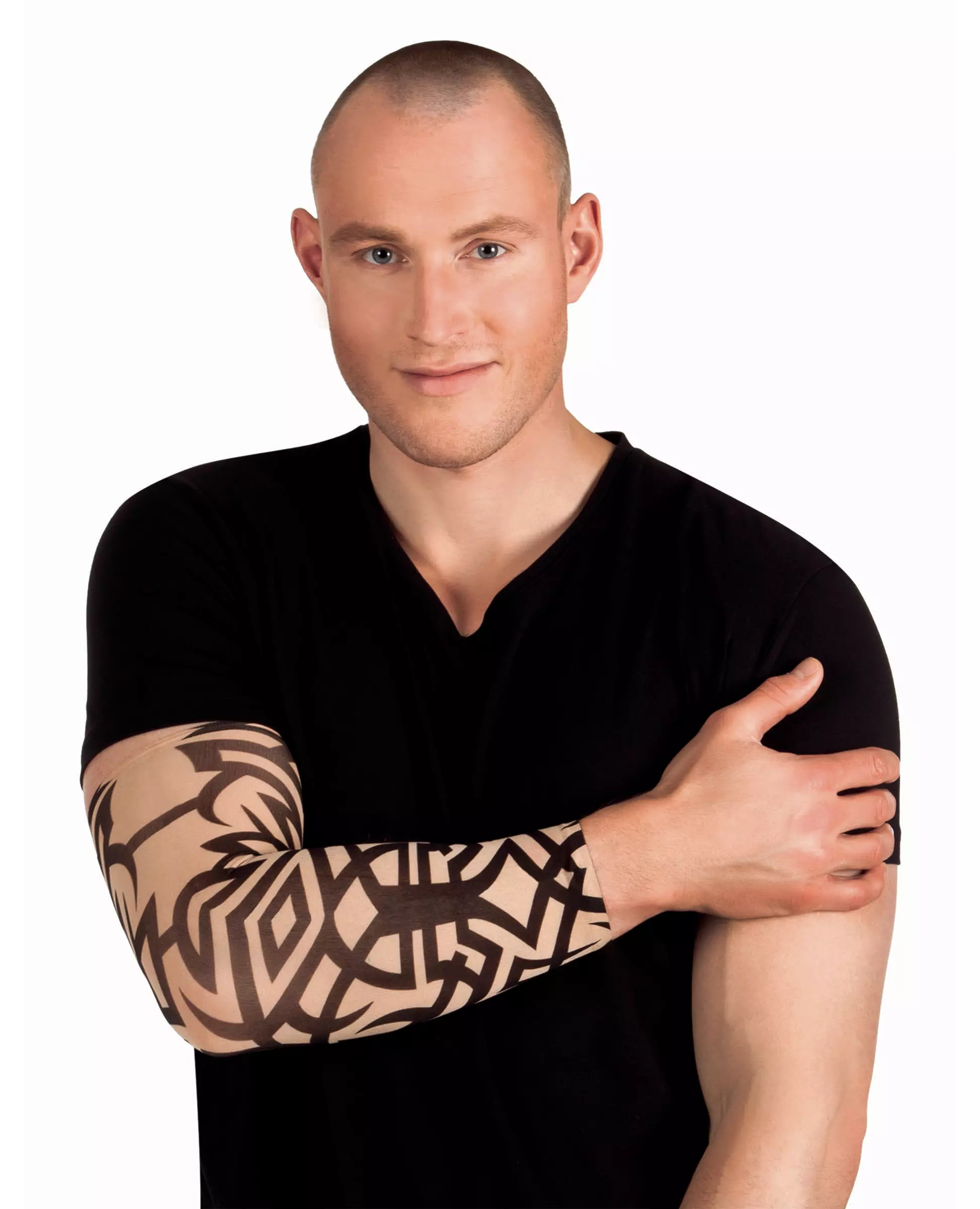 Don't go to the tattooist with this tribal sleeve This nylon sleeve is flesh-colored, with fake black tribal tattoos. Very elastic, this sleeve will easily adapt to your body shape and will give the illusion that you have a tattooed arm. This will be perfect to complete a biker costume for Carnival. Accessories included: 1 Sleeve Material: 100% Nylon