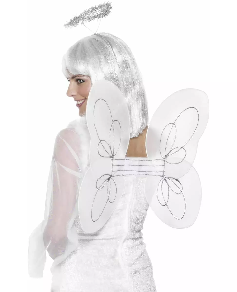 With silver patterns, they measure 45.5 X 37 cm! White angel wings with silver patterns held in place by elastics to position on your shoulders, dimensions 45.5 X 37 cm. Ideal to complete your disguises during your theme parties, Christmas or New Year. Accessories included: 1 pair of wings