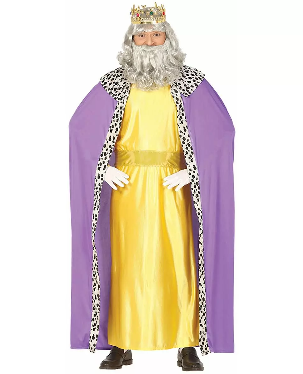 Embody the Magi for the end-of-year celebrations! This yellow and purple Magi costume is for adults. It comes with a tunic, a cape, and a belt. The long tunic of the costume is golden yellow throughout. A shiny gold belt is included to cinch the tunic. The large cape is purple with a black and white border running from the bottom of the dress to the top. This Wise Man costume will be perfect for playing a character from the Christmas crib during the end-of-year celebrations or for Carnival! Accessories included: Tunic, Cape, Belt, Material: 100% Polyester,