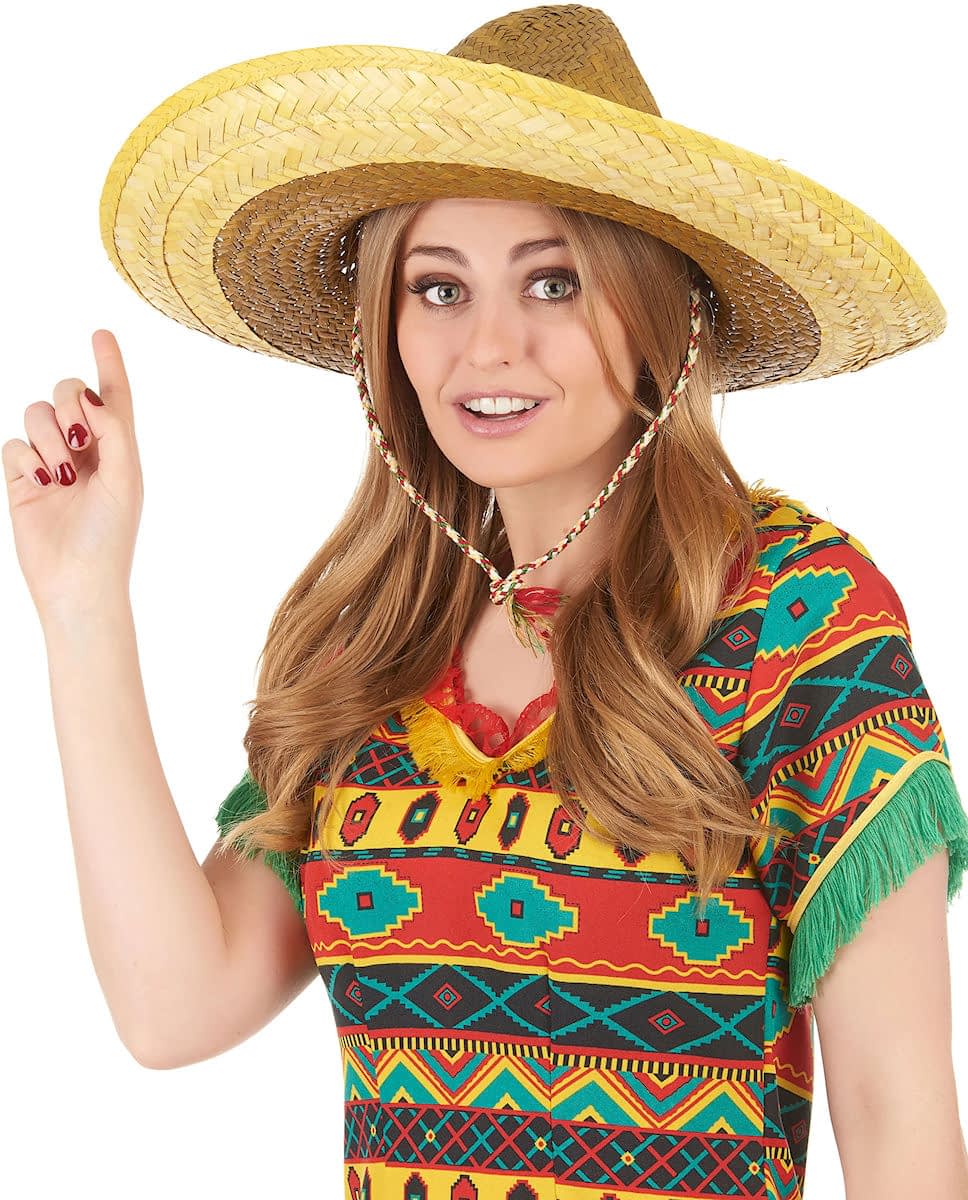 Mexico! This adult sombrero is made of straw. It is yellow. A matching tie is also included. It will be the ideal accessory to complete your costume at a costume party or Mexican theme. Accessories included: Sombrero