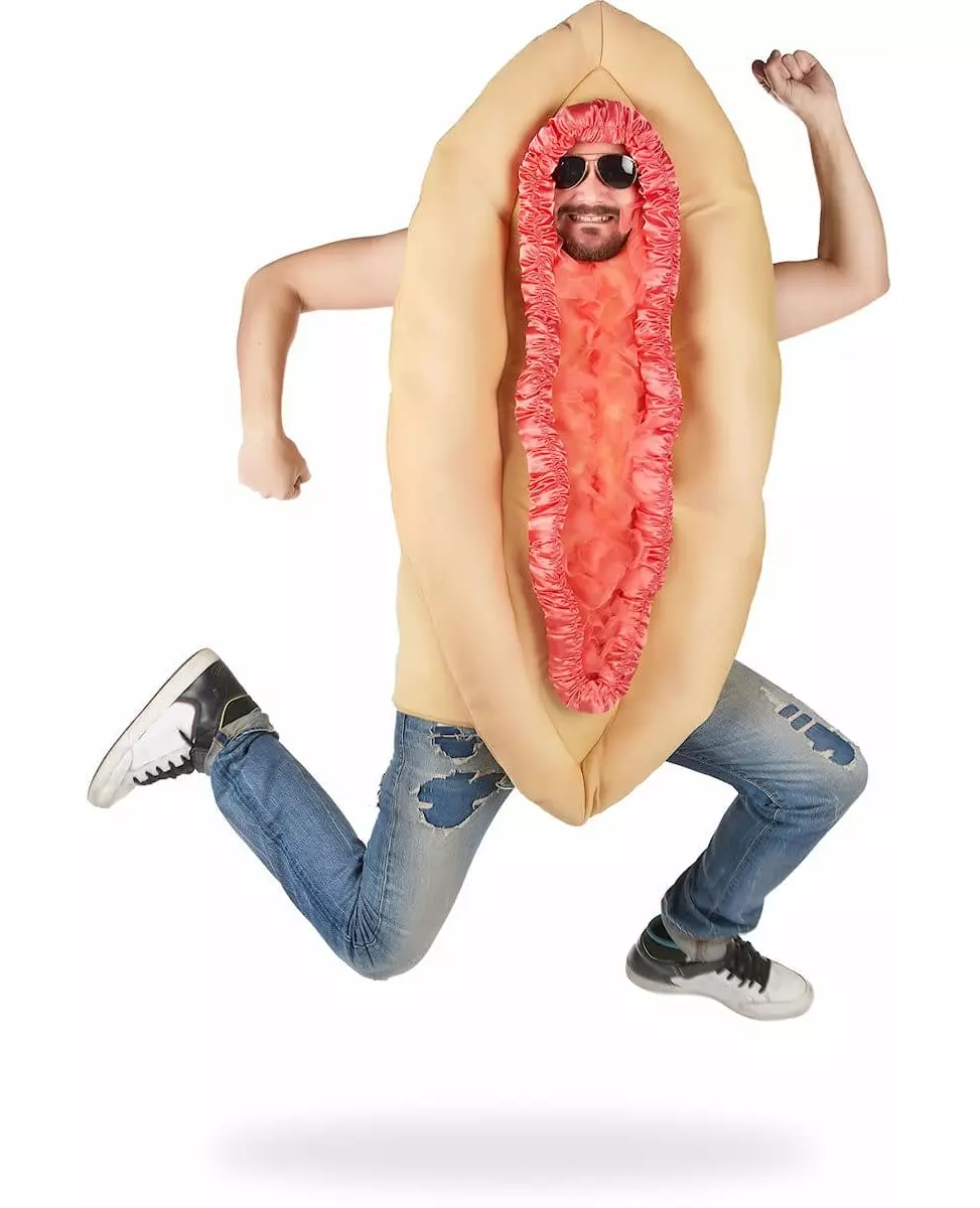 Impossible to go unnoticed! This zézette costume is for adults. It consists of an oval-shaped jumpsuit in flesh and pink, which goes over the head and represents a female genitalia. This humorous costume will make your friends laugh and will be perfect for the end of a single life. Accessories included: Jumpsuit