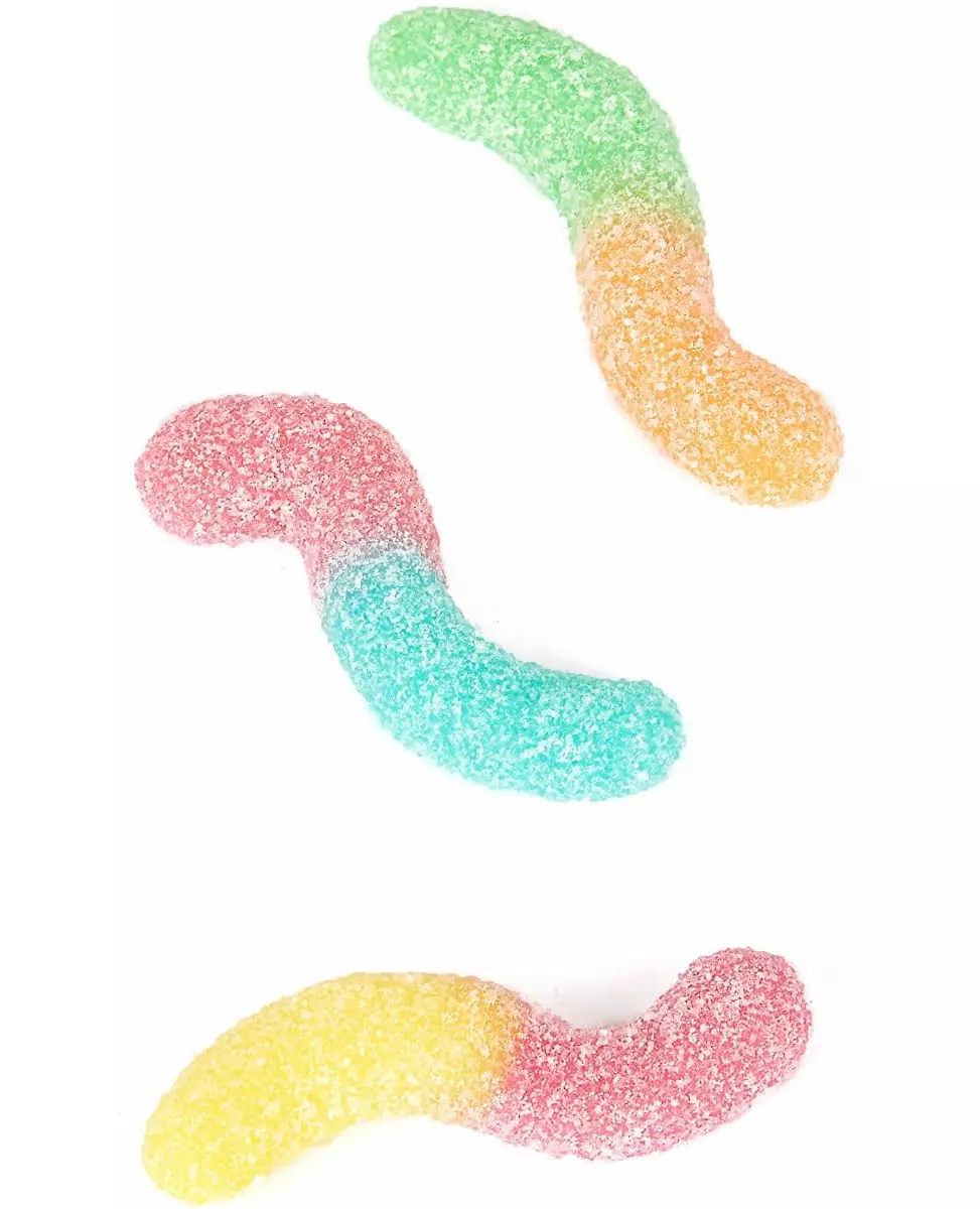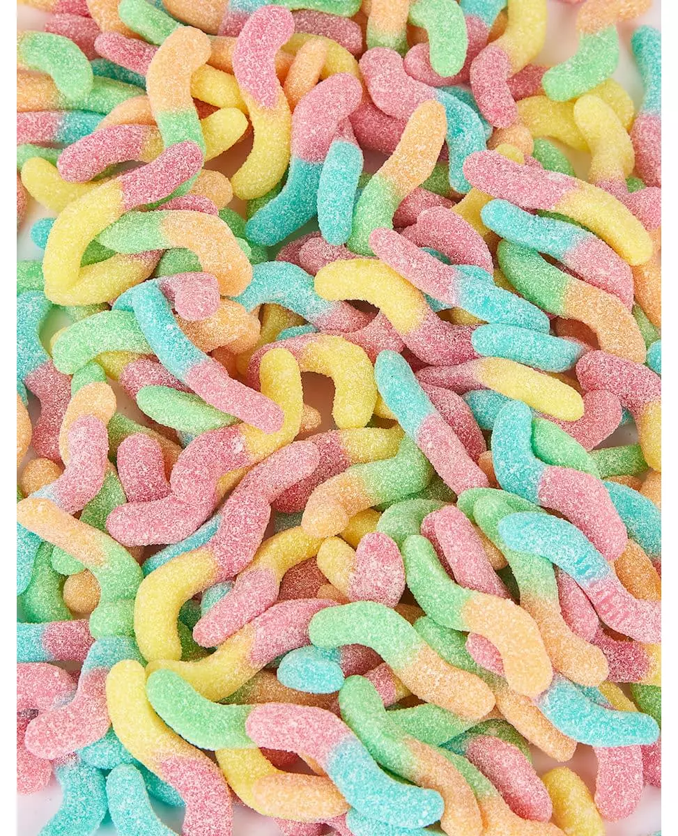 kg of sweet and tangy pleasure! This bag of sweets has a capacity of 1 kg. With different and tangy flavors (apple, peach and strawberry among others), these candies evoke the shape of two-tone earthworms and covered with crystallized sugar. These sweets will be the best effect during your costume parties like Halloween. Ingredients: glucose syrup, sugar, gelatin, modified potato starch, acidifiers: citric acid, lactic acid, malic acid, moisture stabilizer: sorbitol, acidity regulator: : calcium citrates, concentrated fruit juices: apple, peach, flavorings, vegetable fat. Accessories included: 1kg bag of sweets