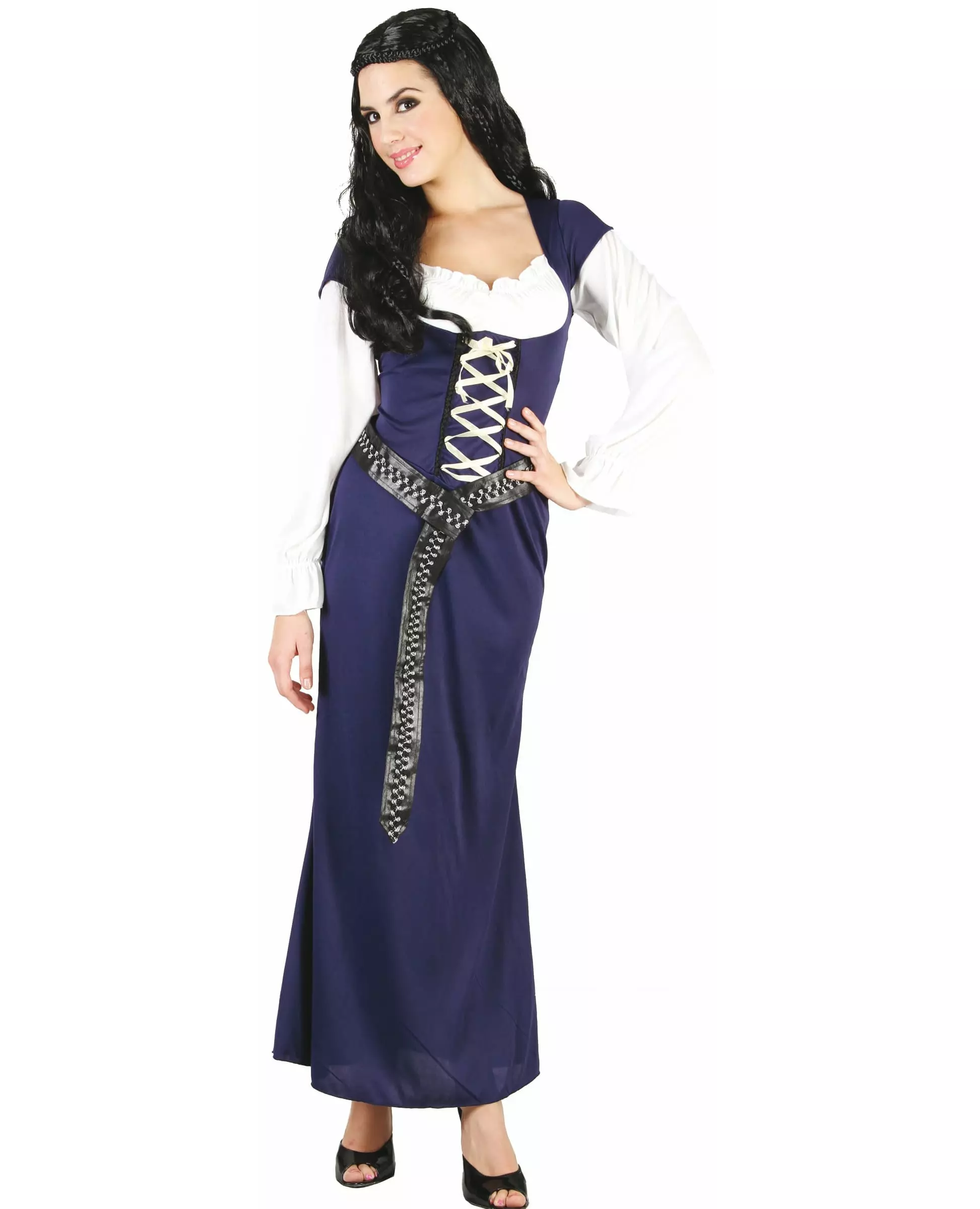 Perfect! This Bavarian costume for women is composed of a long navy blue dress, with a false white shirt sewn underneath, a lace on the bust will allow you to adjust it to your body shape for an effect to your liking. The dress is accompanied by a falling belt. (Shoes not included). One size 40-42. Ideal for carnival or your costume parties.. Accessories included: Dress Belt Material: 100% Polyester Care: By hand