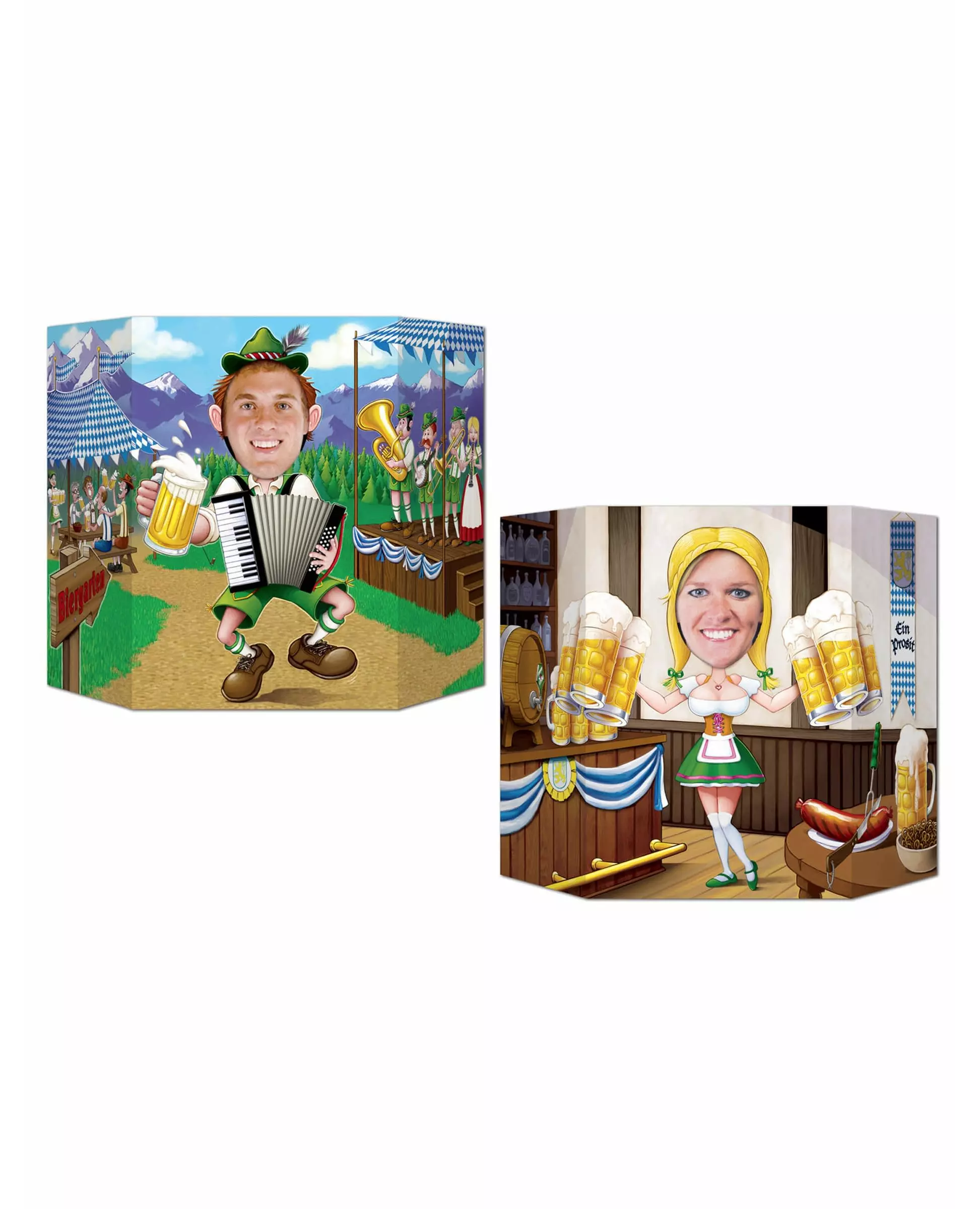 Experience the Oktoberfest! This headpiece on the theme of the famous Oktoberfest is a fun activity. Simply put your head through holes in the middle of the decor to have your picture taken. (random photo) It measures 94 x 64 cm in height. The entertainment is guaranteed for the Oktoberfest!. Accessories included: Headpiece Material: Cardboard Measurement information: 64 x 94 cm