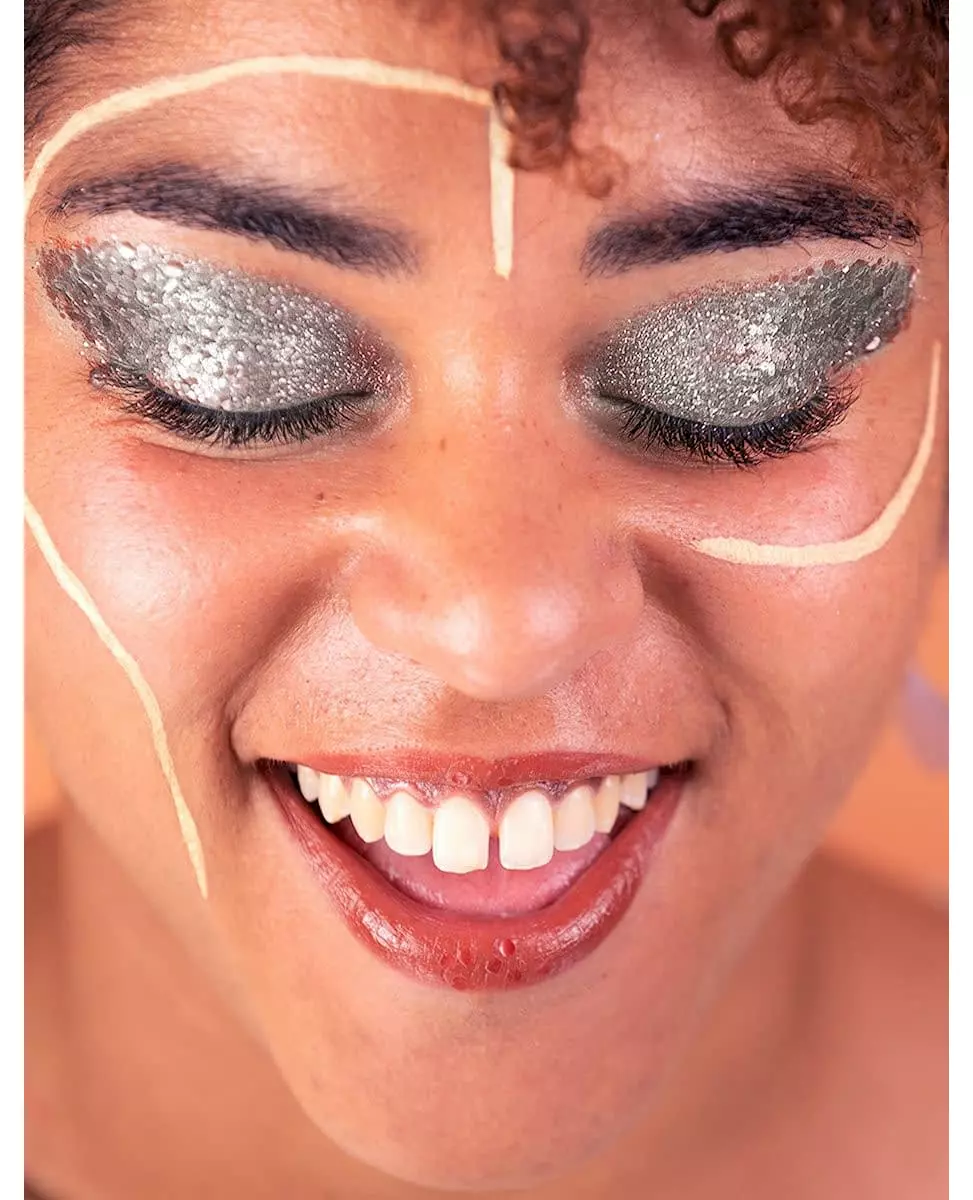 silver look! This pot of biodegradable Metallo Disco glitter from Si si la paillette contains 5 ml, or approximately 3.5 g of glitter. Highly biodegradable and 100% plastic-free, they are Steel-colored (metallic and silver) and are easy to apply with a balm and a brush. Simply apply your balm to your skin, then dip it into the glitter pot and carefully apply the glitter. You can use it on your face, body, hair, and nails. Bring the shine and chic with these Metallo Disco glitters from Si si la paillette for Carnival or your New Year's Eve party! Ingredients: Rayon, Glycerin, Aqua, Urea, Shellac, Mica, Titanium dioxide, Synthetic Fluorphlogopite, CI77491, Tin oxide Ingredients: Rayon, Glycerin, Aqua, Urea, Shellac, Mica, Titanium dioxide, Synthetic Fluorphlogopite, CI77491, Tin oxide. Accessories included: 1 jar of glitter Care: Do not wash