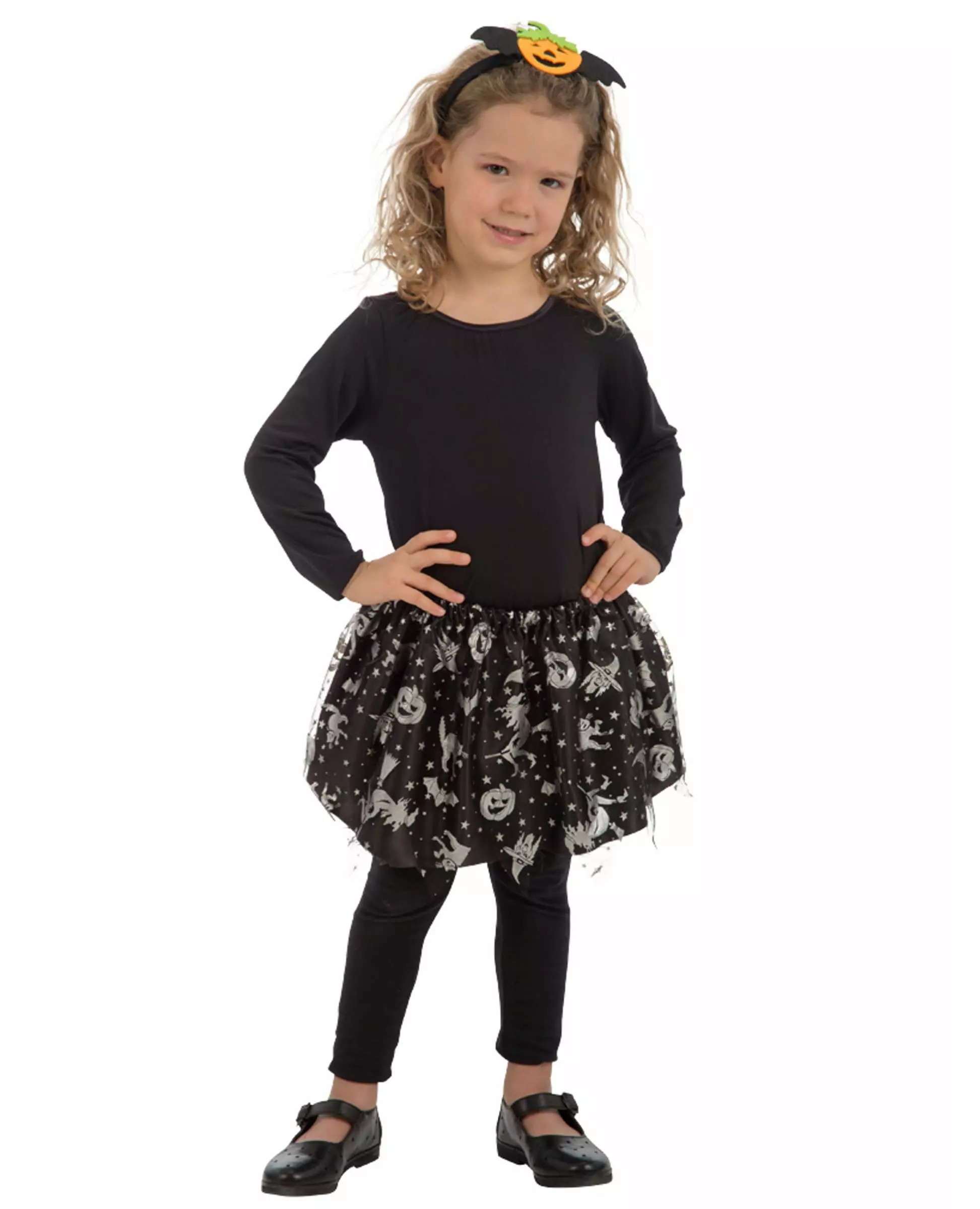beautiful tutu for your daughter This black and silver tutu is for girls. It includes an elastic waistband to properly adjust to your daughter's body shape. The tutu is made of tulle and black fabric with a veil cut into points with silver Halloween patterns. This tutu will be perfect for a pumpkin costume for Halloween. Accessories included: Tutu Material: 100% polyester Care: Hand wash