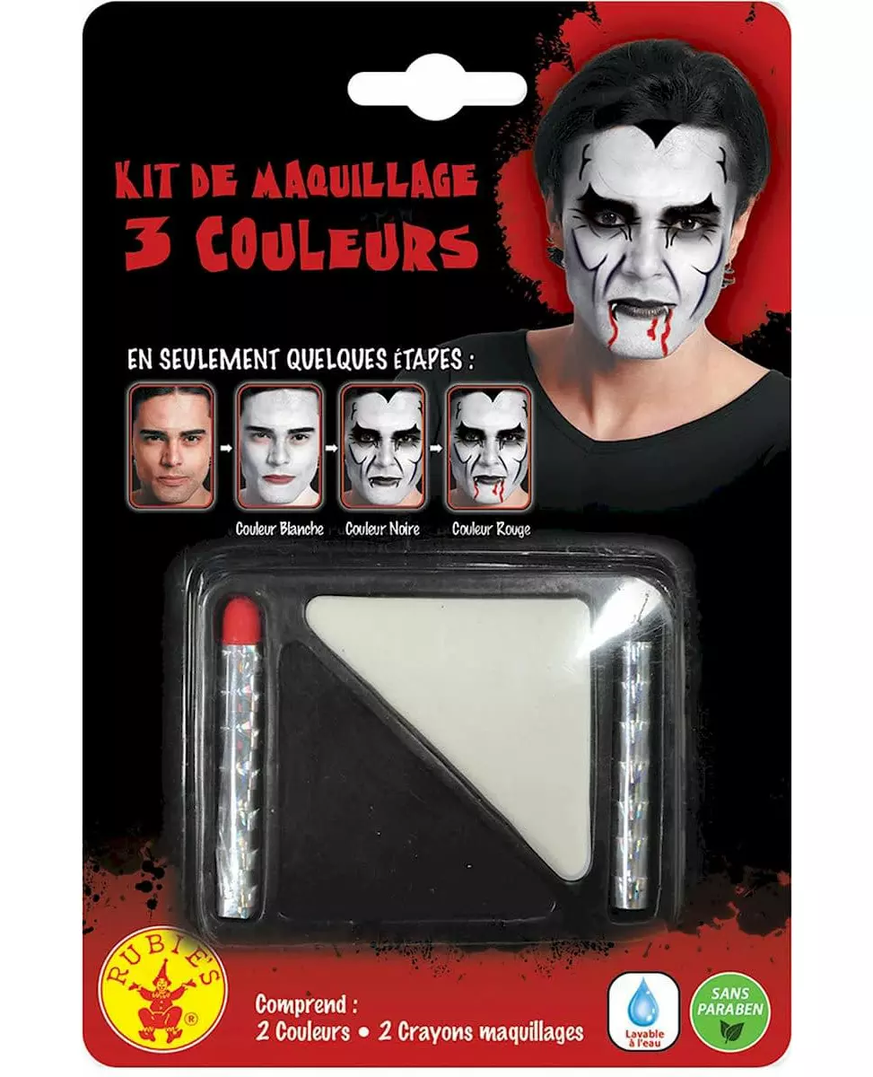 Create terrifying makeup looks! This set includes a makeup kit. In this kit, you will find white and black makeup to paint your face. As well as two pencils to create more detailed horror makeup. This kit will be perfect for creating terrifying makeup looks for Halloween! Accessories included: Makeup kit