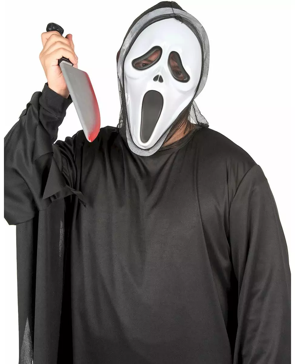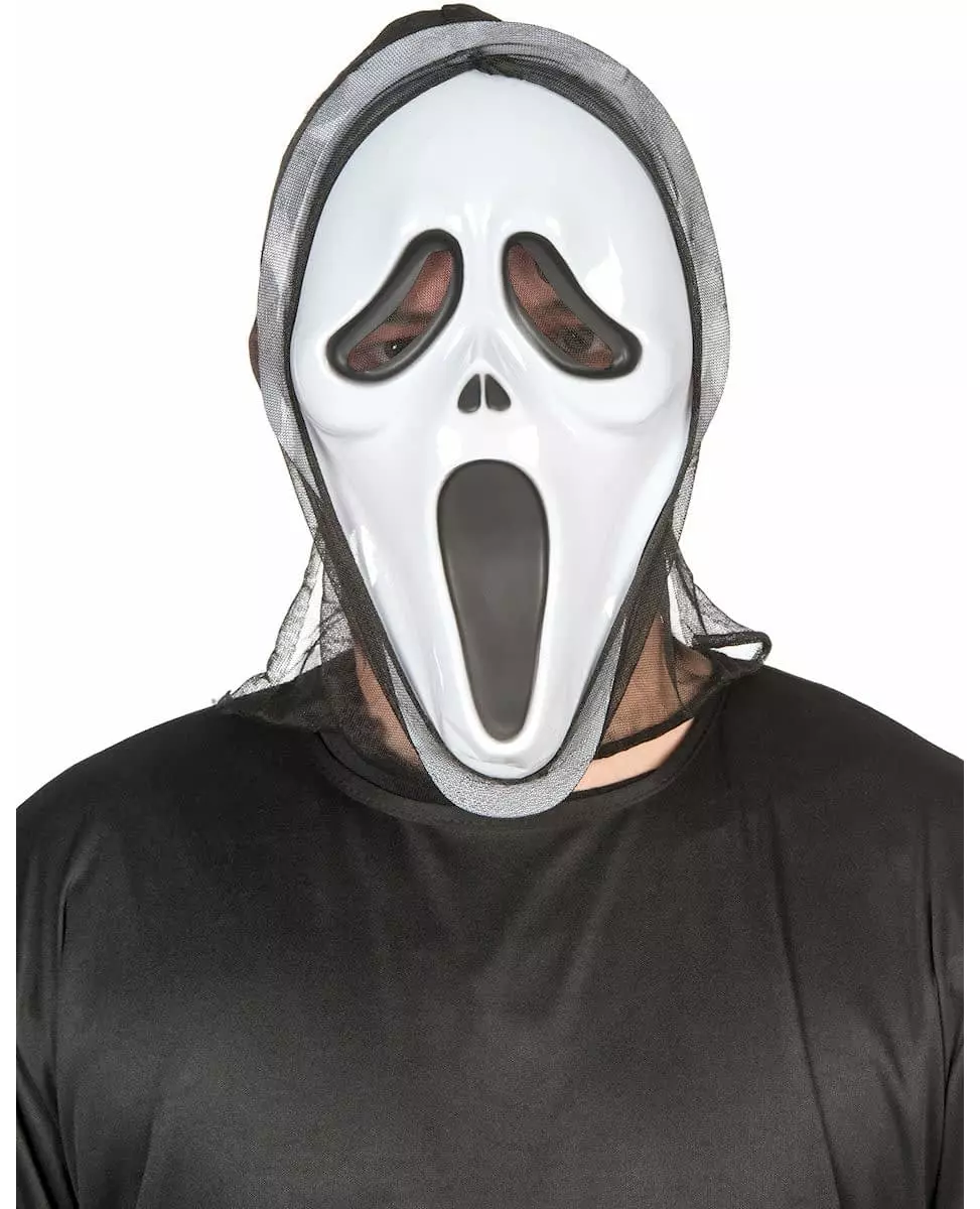Your scary mask! This plastic psychopathic killer mask is for adults (hood not included). This mask is white with a wide open mouth and two large black eyes imitating the ghosts that can be found in horror movies! It will be perfect for Halloween night or a scary-themed costume party!. Accessories included: Mask Material: Plastic