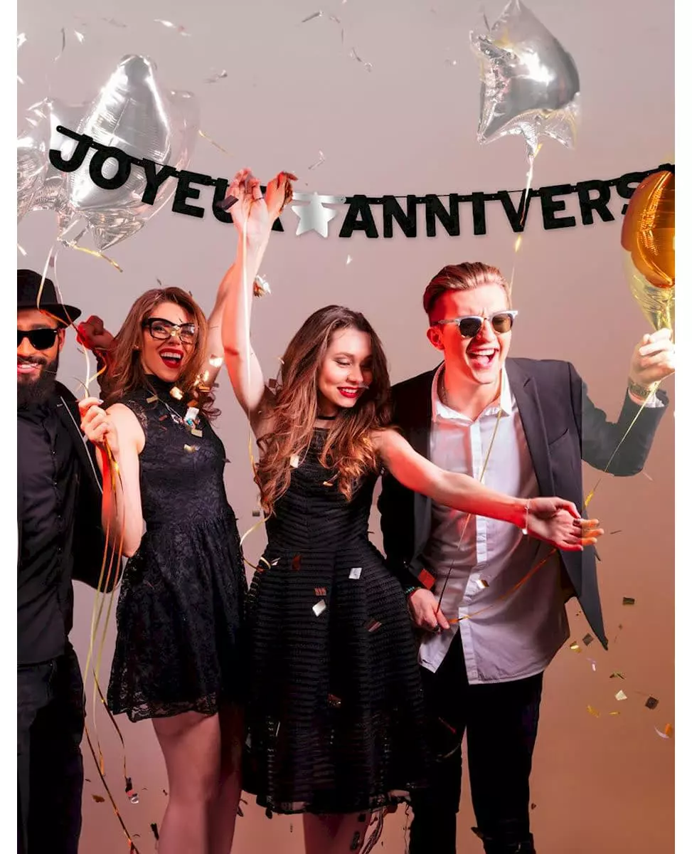 For a chic and elegant birthday! This cardboard birthday garland is almost 280 cm long. It consists of 18 black letters measuring 15.5 cm high and 11.5 cm wide. One after the other, they form the words "Happy Birthday"! This garland will be perfect for decorating a room for a Black & White themed birthday!. Accessories included: Garland Material: Cardboard