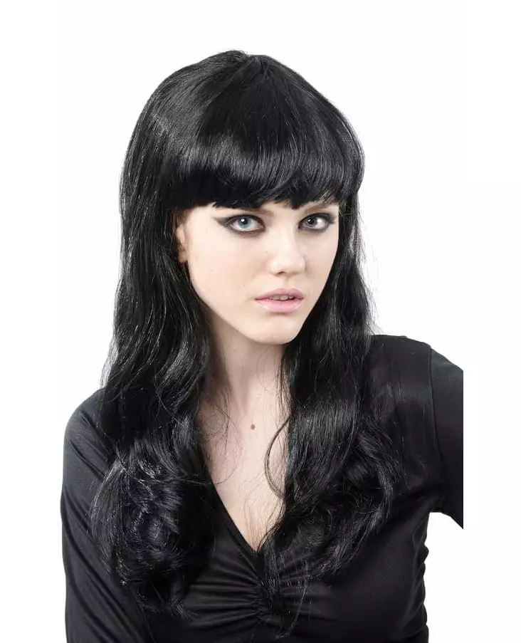 Wavy effect! This black, long, slightly wavy women's wig will be ideal for completing your witch costume on Halloween night, for example.