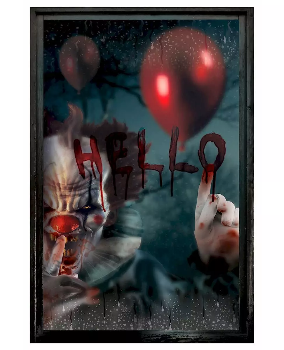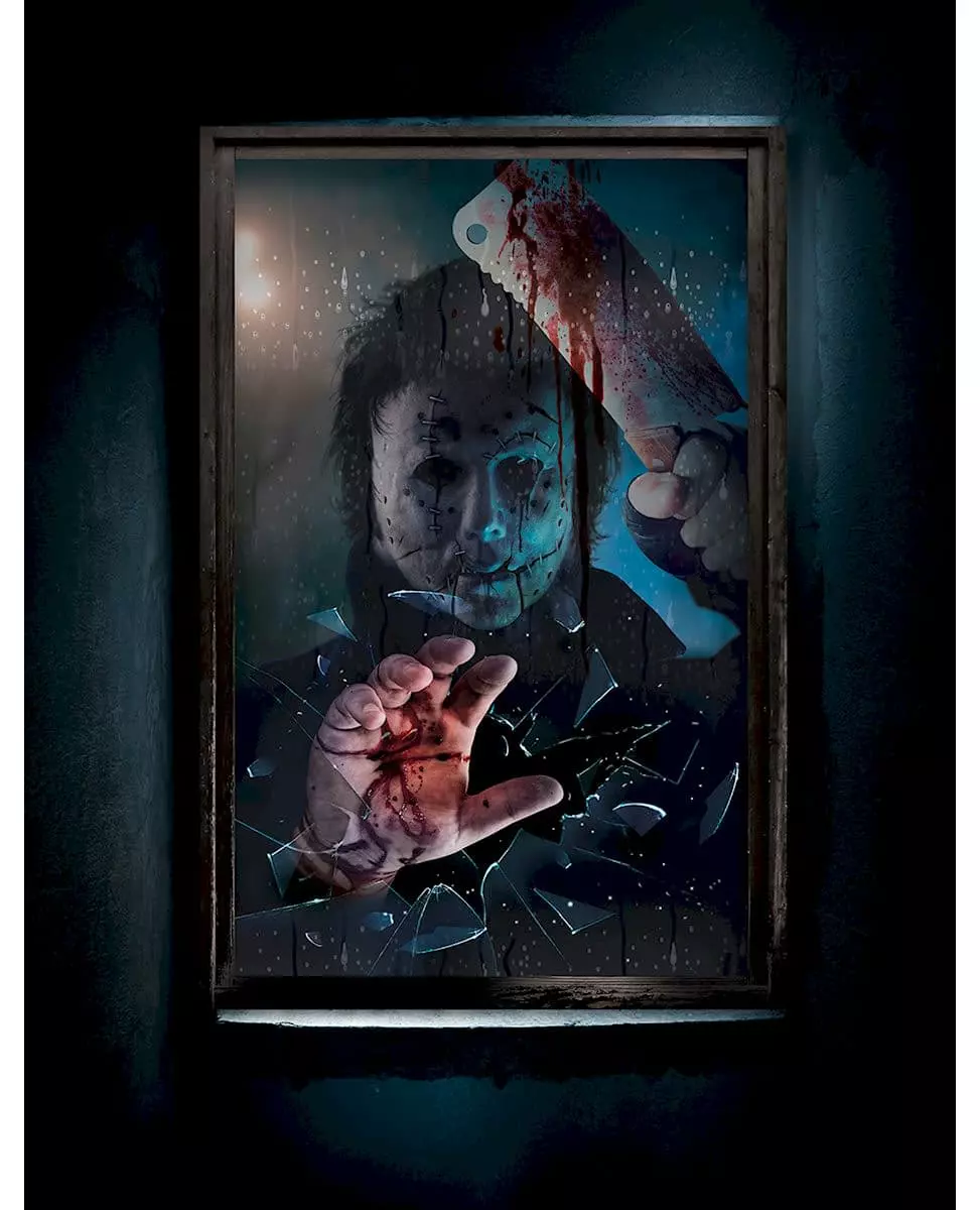 killer is coming to your Halloween party! This "Ghoulish Killer" window decoration measures 80 x 120 cm. The image on this accessory shows a scary and menacing character. His face is distorted, with red eyes and a twisted mouth showing a sinister grin. He is brandishing a knife in one hand, ready for action. Ideal for creating a chilling and terrifying atmosphere during your Halloween party, this "bloody killer" decoration will add a dark note and will certainly shock your guests. A perfect element to make your decor even more spooky!. Accessories included: 1 window decoration