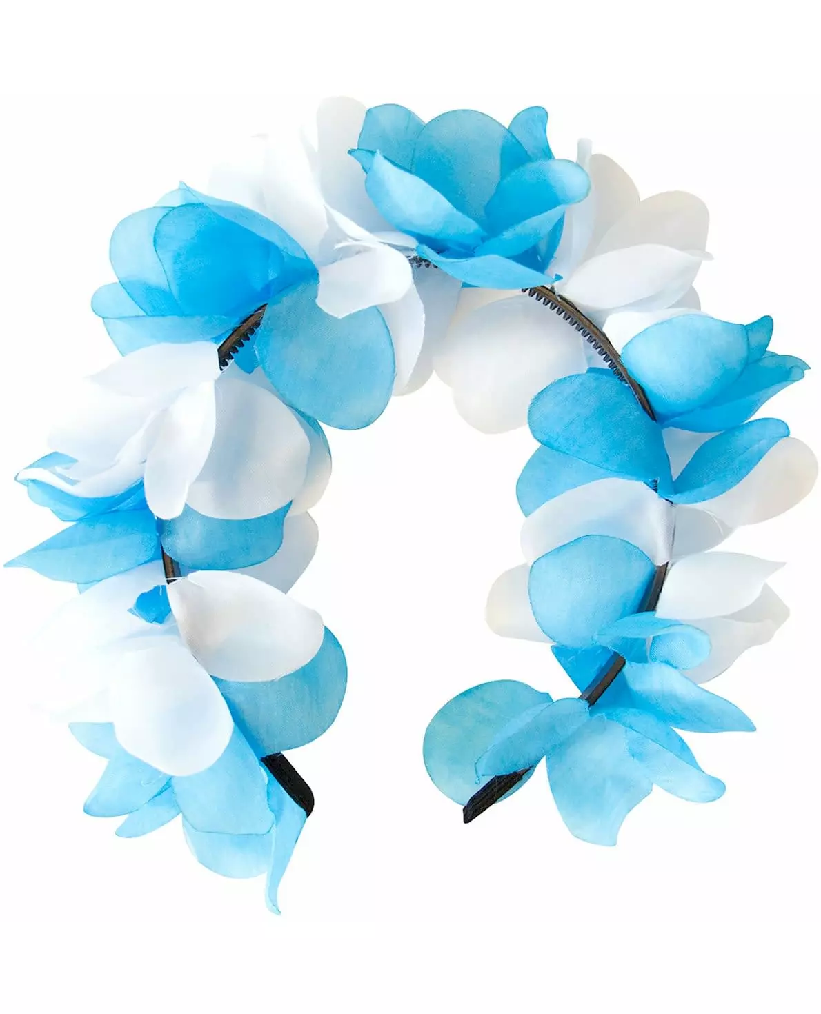 Blue and white! This accessory is for adults. It represents a crown of blue and white flowers. These flowers are placed on a black plastic headband. It will be perfect to complete your outfit for a costume party with your loved ones!. Accessories included: Flower crown