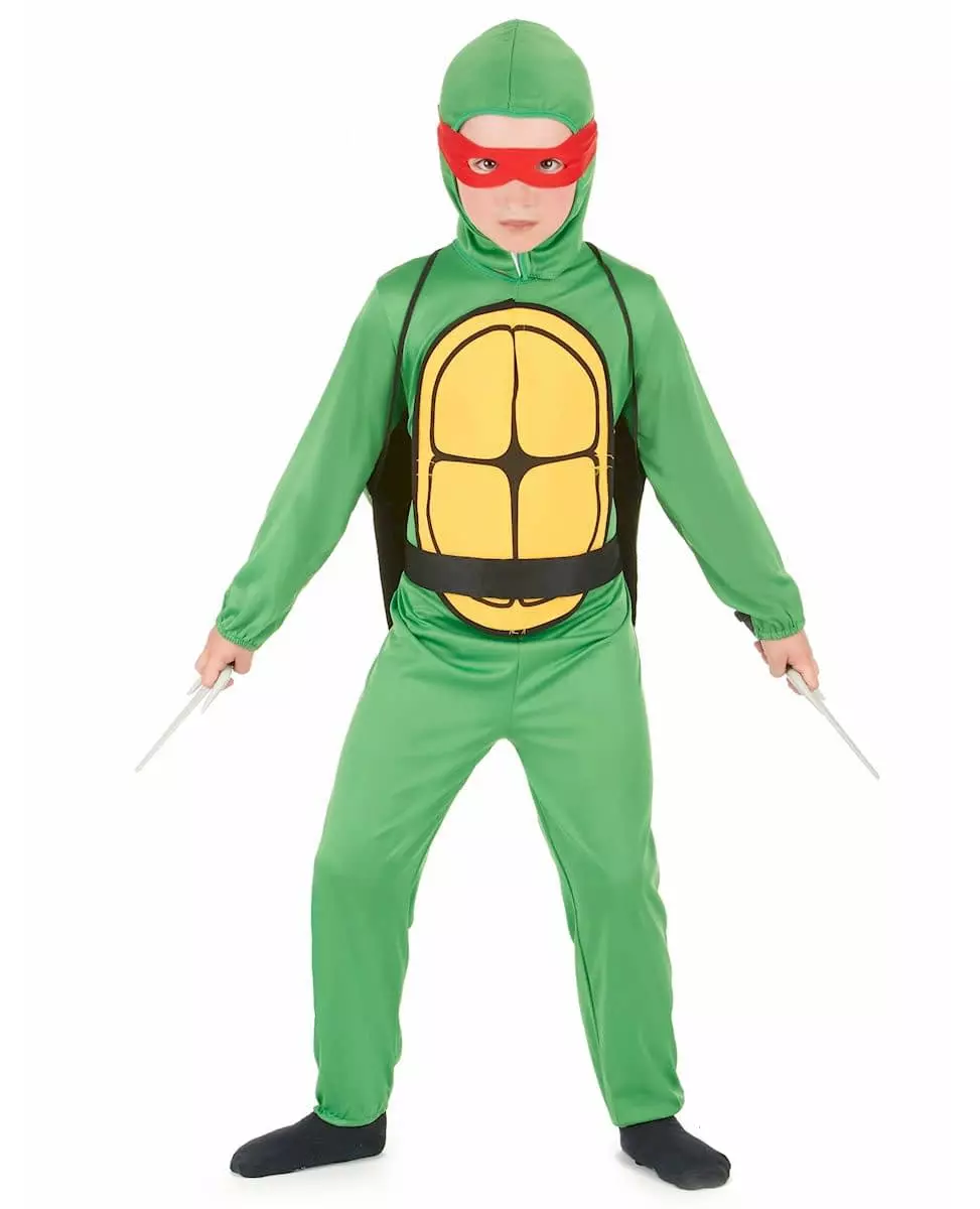 Maintain order in this turtle costume. This fighting turtle costume for boys consists of a jumpsuit, a belt, a hood, a mask, and a shell. The jumpsuit is green with a yellow foam insert at the front to represent the turtle's "belly." For added comfort, the ankles and wrists are elastic. This jumpsuit closes in the back with Velcro. A green shell completes this costume to make you a real turtle. It can be worn like a backpack using elastic bands. A black belt will highlight your waist. It fastens in the back with a large Velcro strap. A green hood and a red wolf will allow you to go incognito. The wolf is elastic to easily adapt to your head circumference. This costume will be perfect for embodying a famous cartoon turtle for Carnival. Accessories included: Jumpsuit Hood Wolf Shell Belt Material: 100% Polyester Care: Hand wash