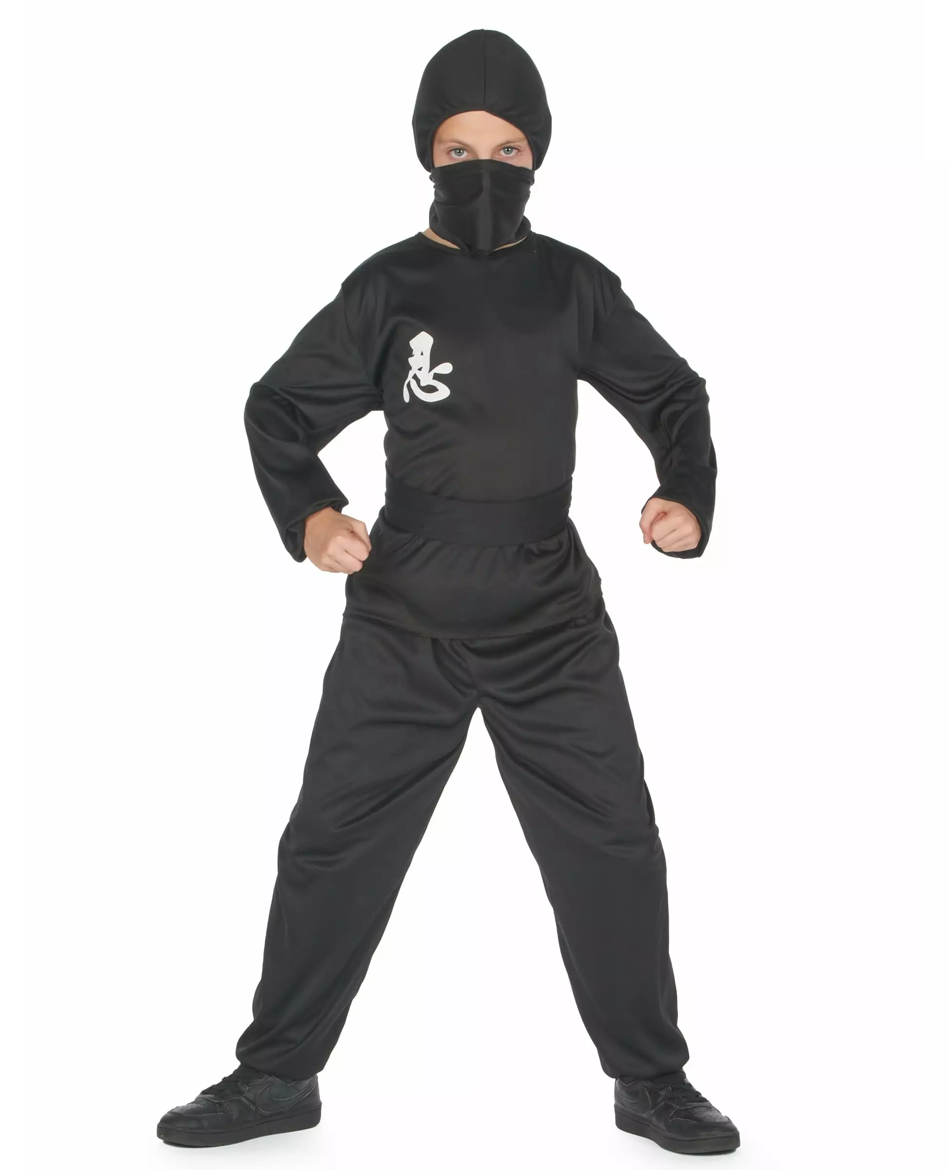 With ninja badge! This ninja commando costume for boys consists of black elastic waist pants, a long-sleeved t-shirt with the ninja badge flocked on the chest, a black belt and a hood (Saber and socks not included). Comfortable and lightweight, this costume will be perfect for Carnival, a show, a birthday party or any other fancy dress event. Accessories included: Top Pants Belt Hood Material: 100% Polyester Care: Dry clean