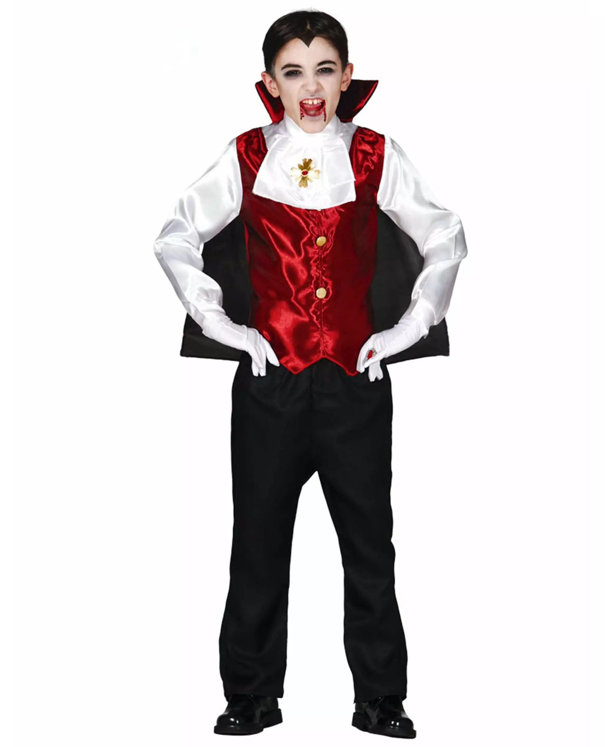 Vampire Count Costume for Boys A vampire costume for Halloween. This vampire count costume for boys consists of a cape, a shirt, trousers and a vest (gloves and shoes not included) Child's costume includes: 1 Cape, 1 Shirt, Trousers, Vest