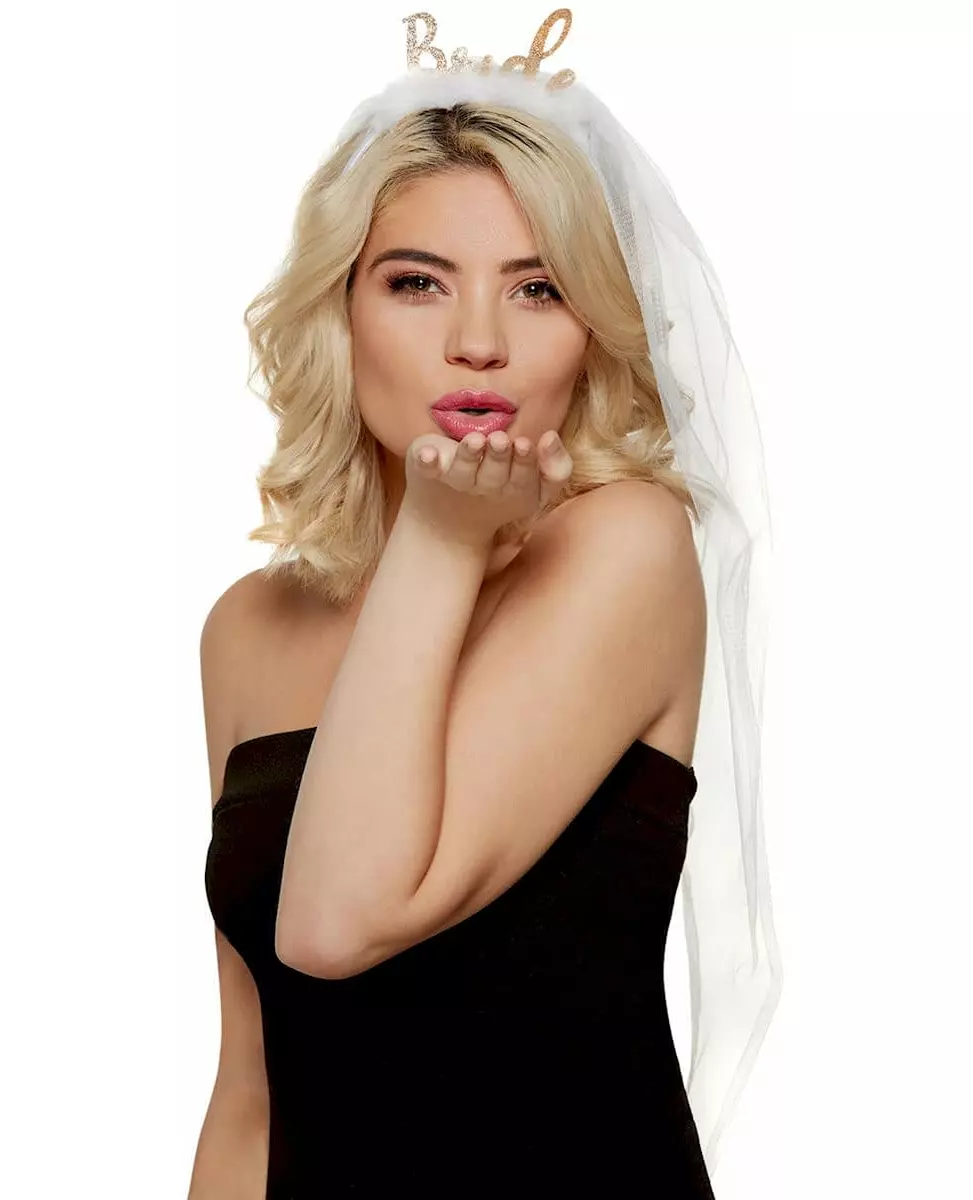 beautiful headband for your bachelorette party! This headband is for women. It consists of a white veil, a headband with the writing "bride" in gold and feathers. With such a headband you will be perfect for having fun during your bachelorette party!. Accessories included: Headband Care: Hand wash