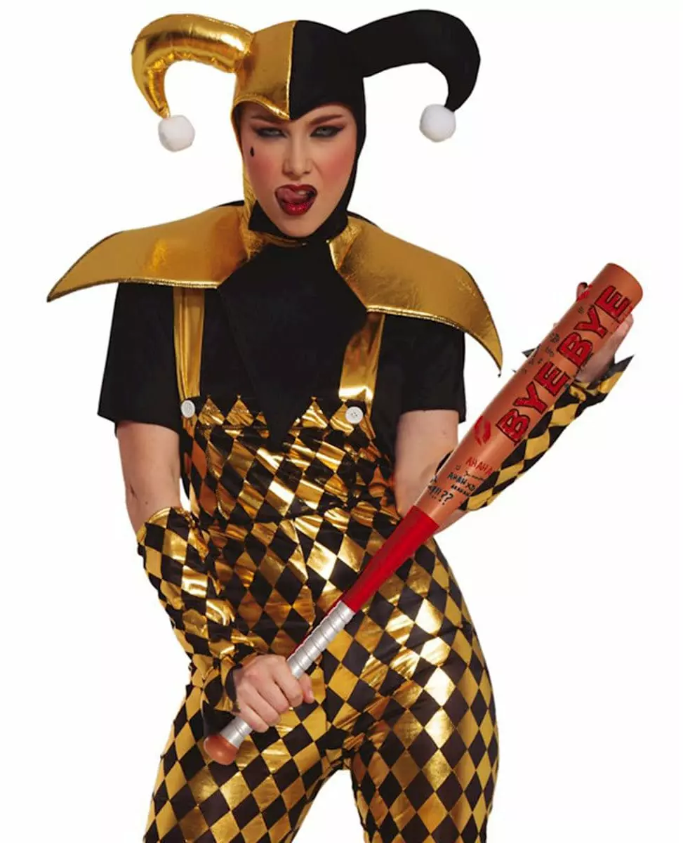 Perfect for a crazy harlequin look! This baseball bat is for adults. It measures 73 cm and its prints give the illusion of a real wood bat thanks to its grooves and beige color. Inscriptions are annotated along the length of the bat: byebye, a red kiss, punctuation marks... Complete your scary harlequin outfit for your Halloween or comic book-themed costume party! Accessories included: Bat