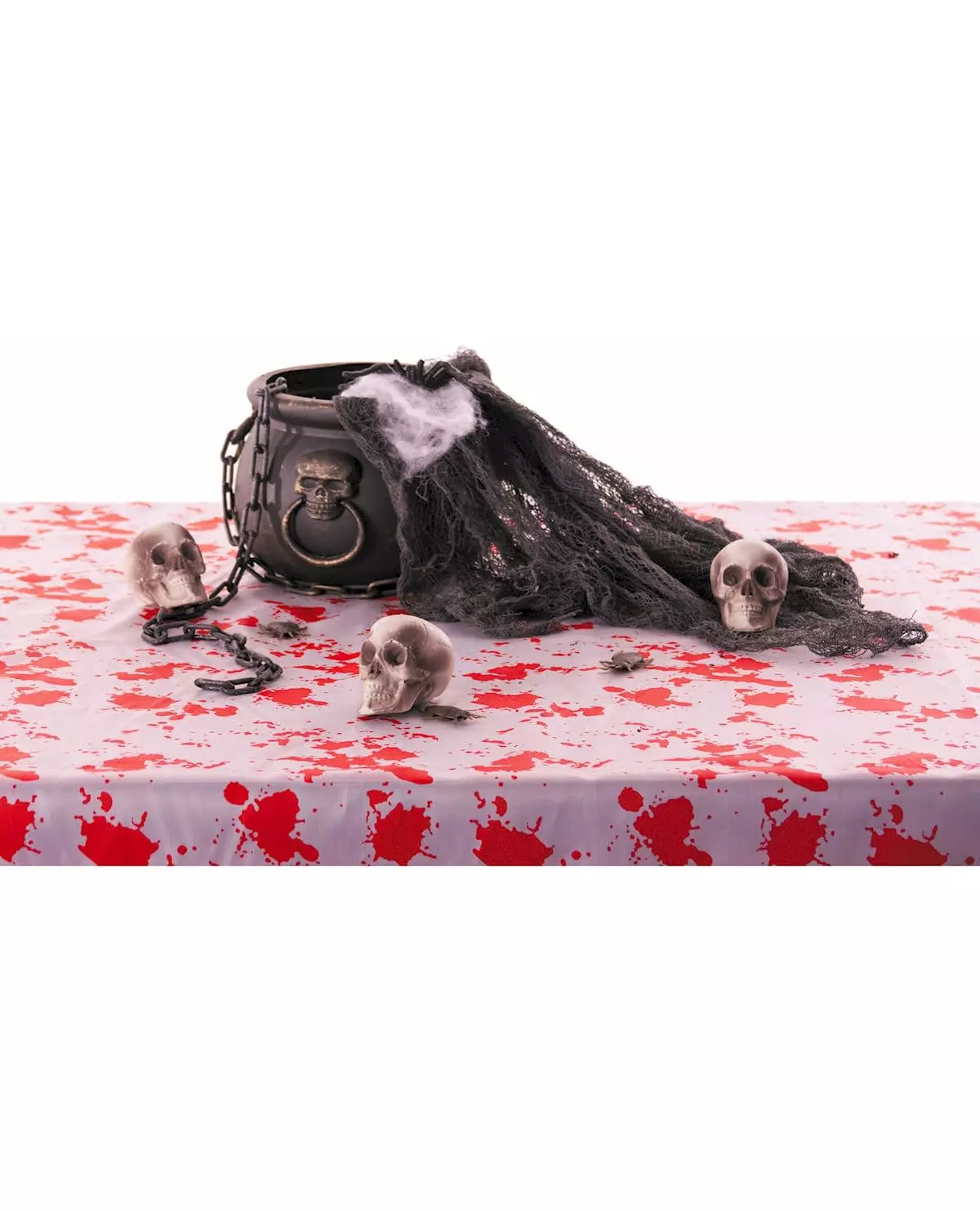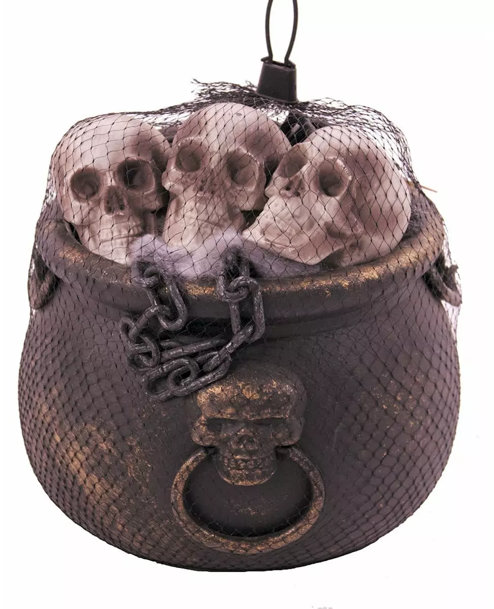 skeleton decoration for Halloween! This cauldron decoration kit contains 12 pieces. It consists of a black cauldron, a tattered table runner, 3 skulls, a tarantula, 5 cockroaches and a spider web. This cauldron decoration kit will be perfect for creating a gloomy atmosphere for your Halloween decoration!. Accessories included: 1 cauldron 3 skulls 1 table runner 1 tarantula 1 spider web 5 cockroaches