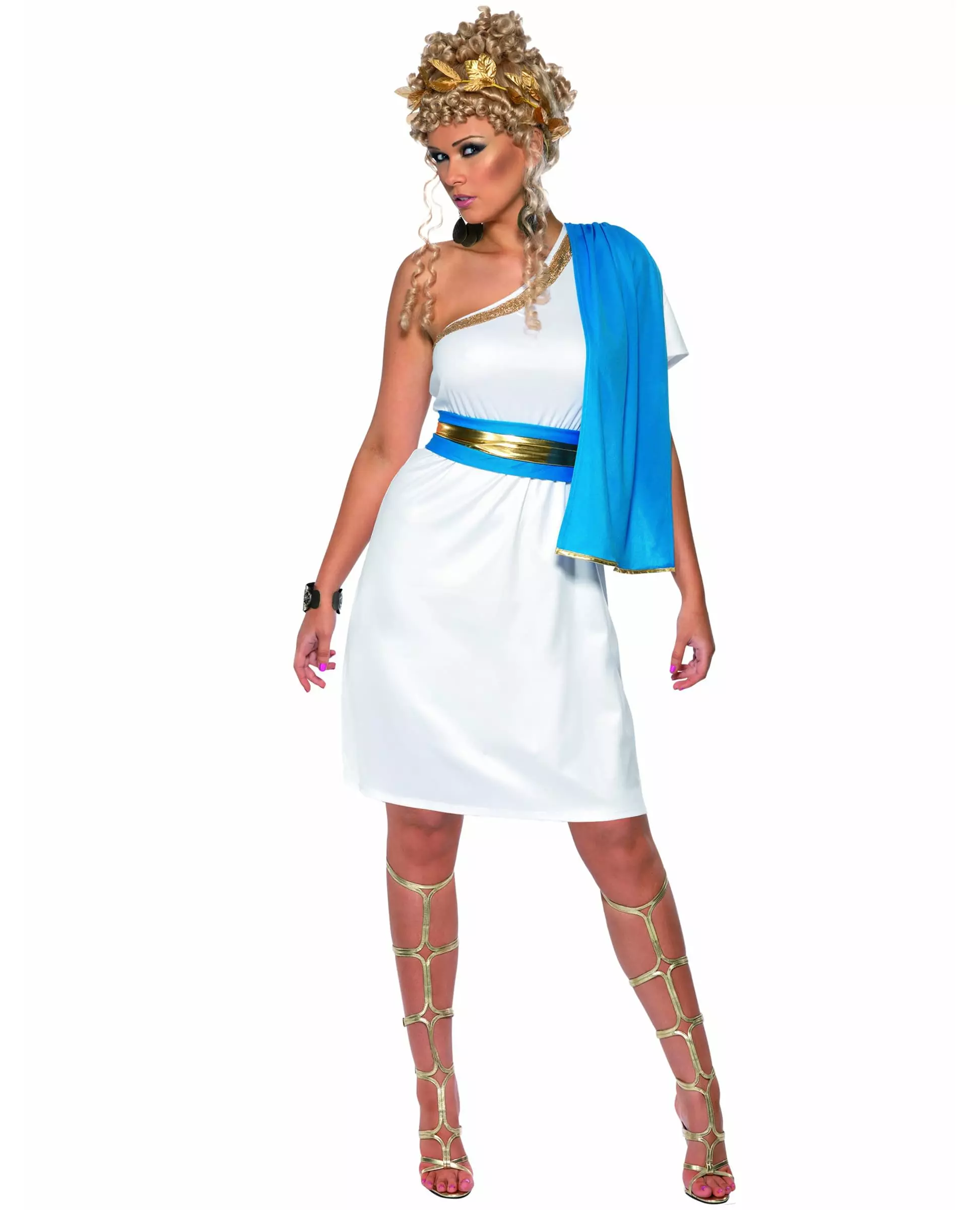 A real Roman! This Roman woman costume consists of four pieces. The dress is made of a pleasant fabric to wear, highlighting your shape thanks to the adjustable belt. The toga is sewn onto your dress and completes your beautiful outfit very well. The crown of golden leaves is easily positioned in your hair (Jewelry and shoes not included) This costume is perfect for your fancy dress parties. Accessories included: Dress Toga Belt Crown Material: 100% Polyester Care: By hand