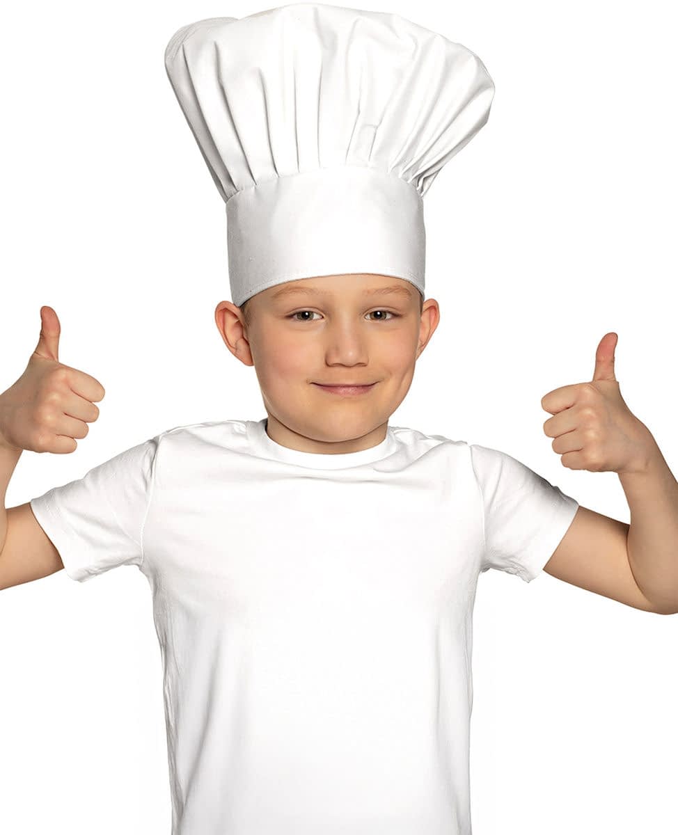 very crazy chef! This chef's hat, sold separately, is for children. This tall, puffy white hat faithfully represents the chefs' hats! With this hat, to accessorize his chef's costume, your son will be ready to cook up delicious dishes for your evenings on the theme of professions, uniforms, cartoons or for carnival! Accessories included: Hat, Material: Polyester,