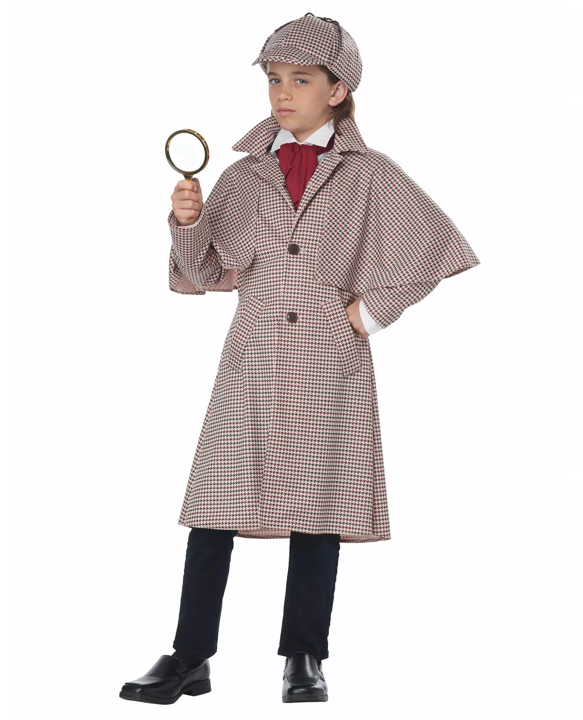 Child costume includes: Hat, Jacket, Scarf, Magnifying glass, Pipe.