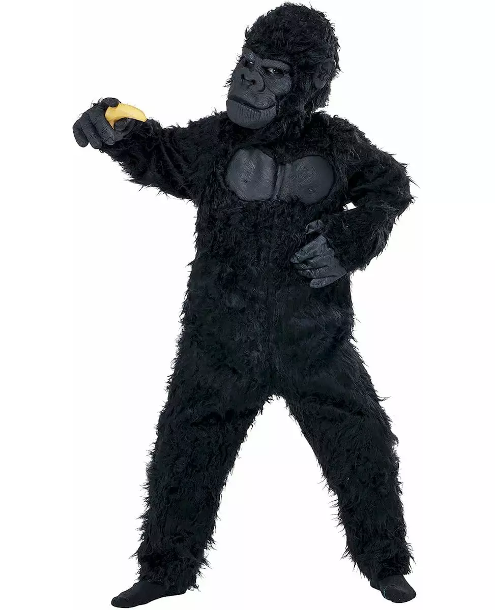 This big beast is coming to the party! This gorilla costume for children consists of a jumpsuit, a mask, and a pair of gloves (banana and socks not included). The set represents a gorilla with black faux fur. The faux fur jumpsuit covers the child's entire body, and the chest is made of latex. It has an opening in the back and a Velcro fastener for easier donning. The mask is made of latex at the face level with holes for the eyes and nose. It will cover the back of the head with faux hair. The latex gloves and hair will also perfectly complete this costume. Your child transforms into a larger-than-life King Kong for a fancy dress event with his friends! Accessories included: 1 jumpsuit 1 full face mask 1 pair of gloves Material: 100% polyester Measurement information: For size 10-12 years: jumpsuit approximately 123 cm long.