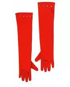 Satin material! Long red satin gloves for girls set with rhinestones, measuring approximately 40cm from one end to the other. This accessory is perfect to complete a princess costume, for a ceremony or even for carnival. « © Copyright Widmann SRL ». © Copyright Widmann SRL.