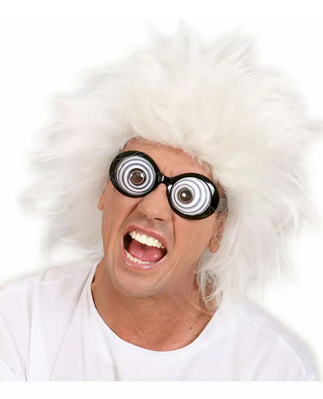 Don't strain your brain too much! These crazy-eyed glasses for adults are made of rigid plastic. The lenses are embossed like eyeballs bulging out of their sockets. From temple to temple, the width of the glasses is approximately 15 cm. The arms are foldable, so the glasses can be stored easily. With a shaggy wig and a simple white coat, for example, you're sure to make your friends dizzy at costume parties. © Copyright Widmann SRL. Accessories included: Glasses Material: Plastic