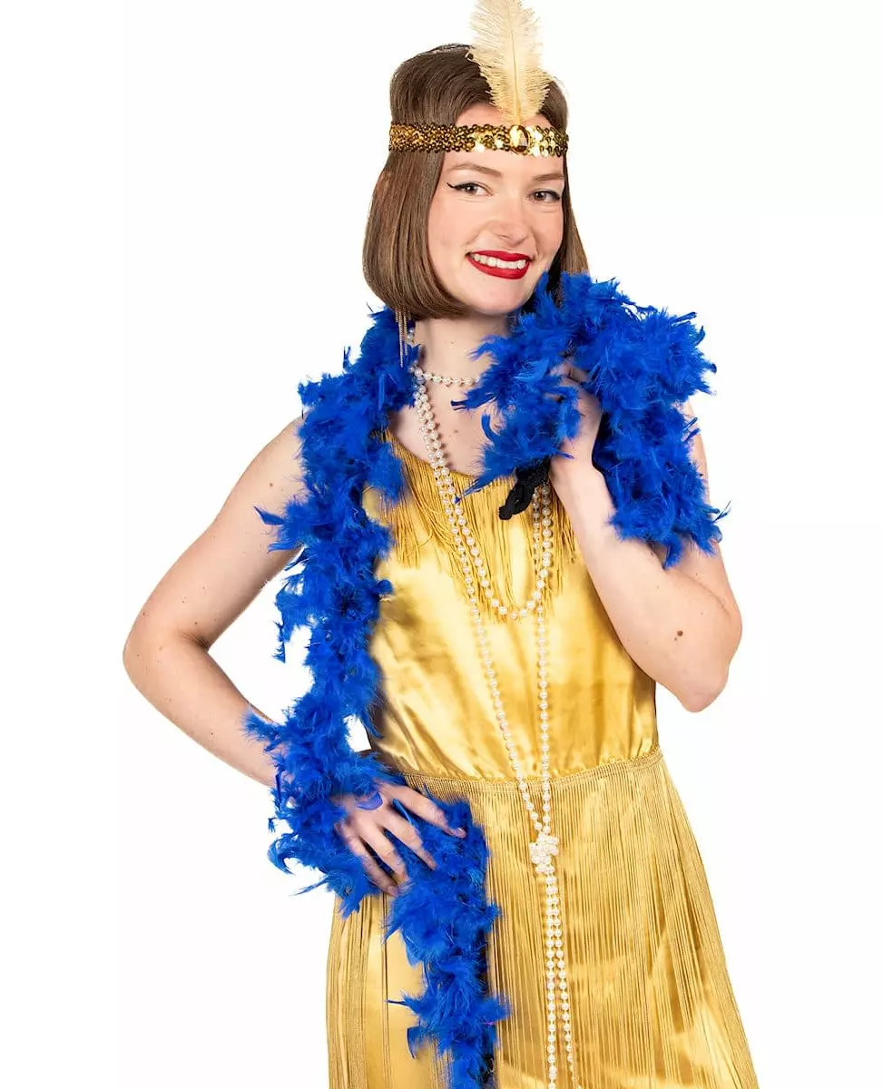 Very lightweight! This dark blue feather boa is for adults. This accessory measures 2 meters long. It is ideal for enhancing a costume. Accessories included: Boa Material: Feathers