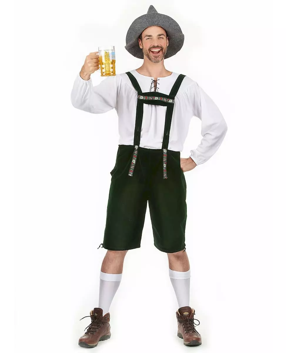 Black and white set! This Bavarian costume for men consists of a pair of shorts/overalls (shirt, hat, shoes, socks and beer mug not included). The dark green shorts reach the knees, are wide, and are held up by a pair of overalls with small flower patterns. This typical Bavarian costume is perfect for a theme party with your friends or for Carnival. © Copyright Widmann SRL. Accessories included: Short pants/Overalls Material: 100% Polyester Care: Hand wash